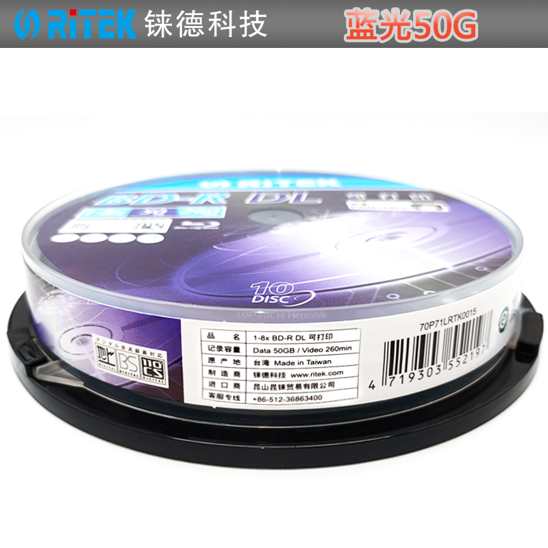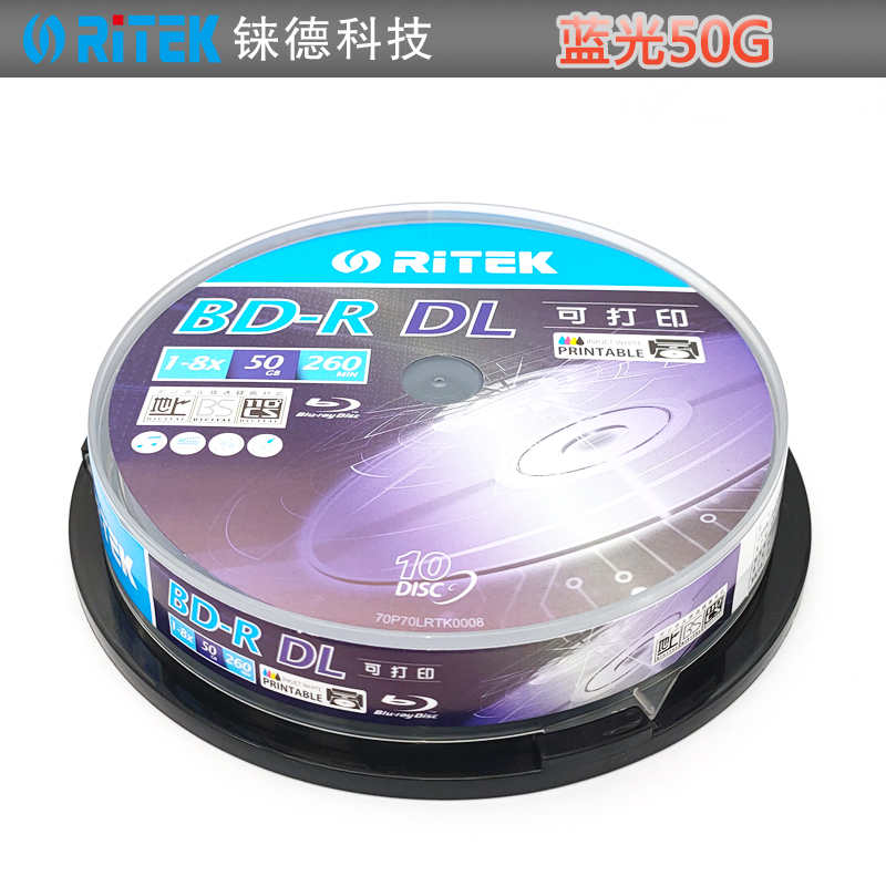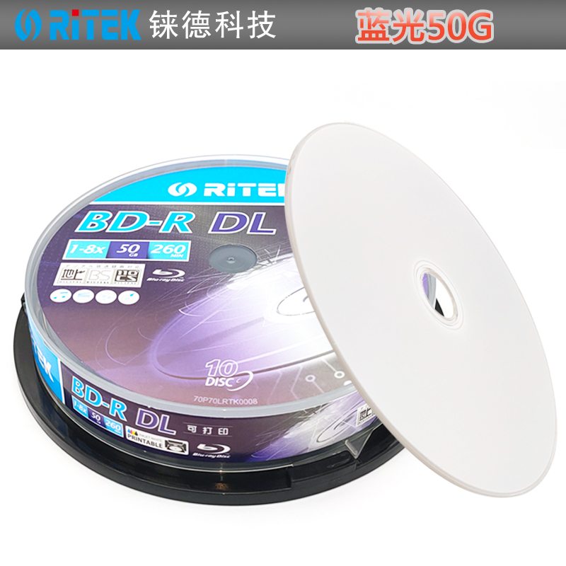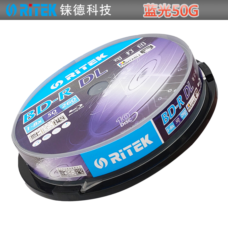 铼德(RITEK) 蓝光可打印 BD-R 1-8速50G 空白光盘/光盘/刻录光盘/刻录盘/蓝光刻录盘/光碟 礼 桶装10片