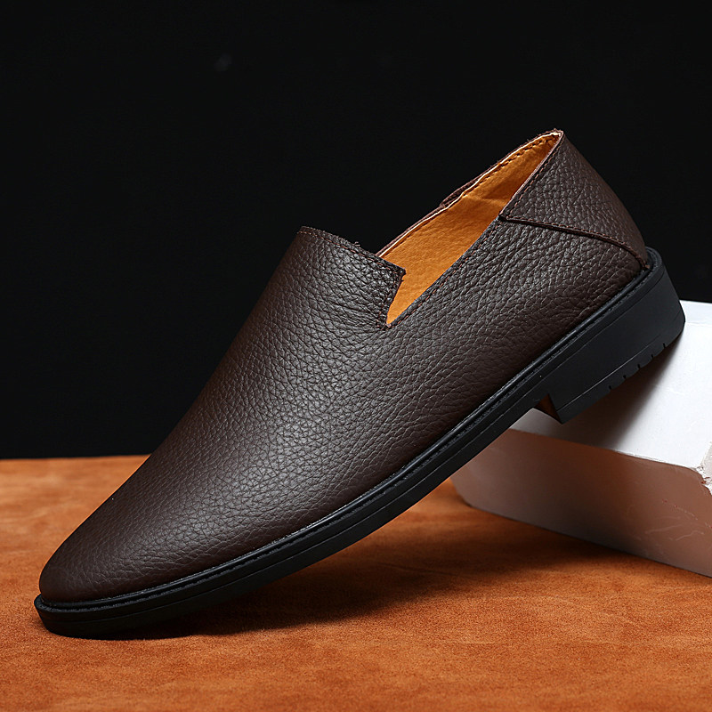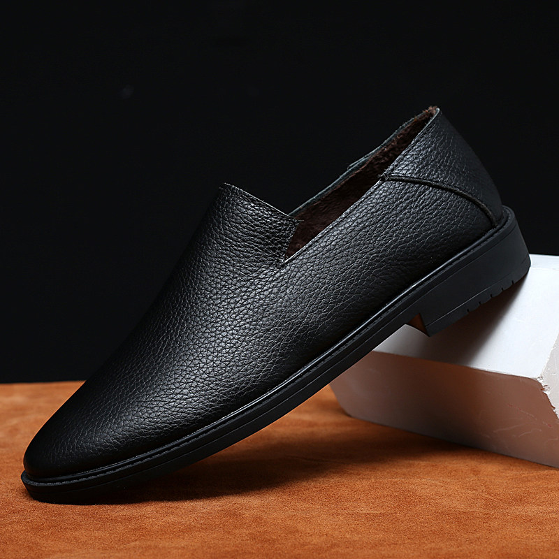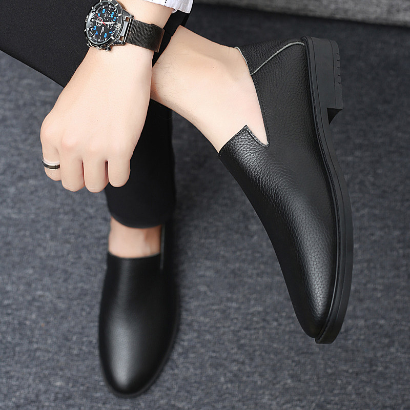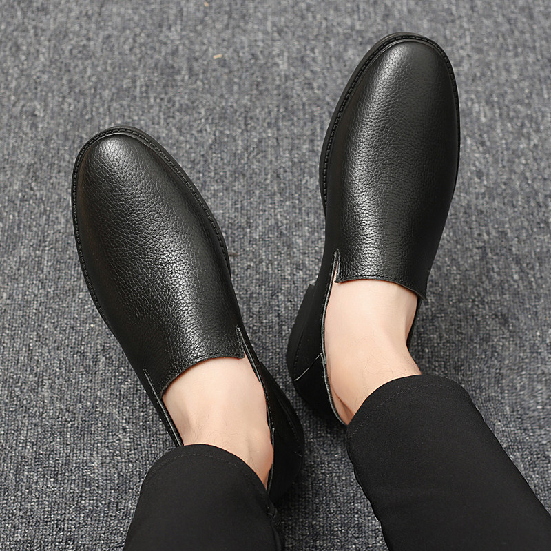 尖头休闲男皮鞋2025新款轻便软低真皮小码时尚潮流一脚蹬豆豆鞋男