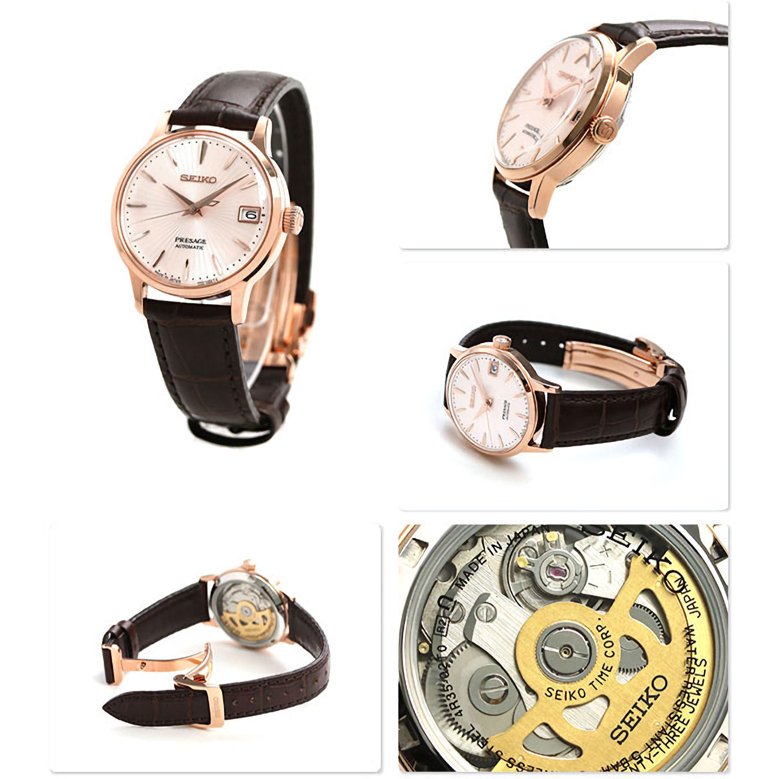全国联保精工表女鸡尾酒系列机械表真皮透底时尚女表SRP852J1日产
