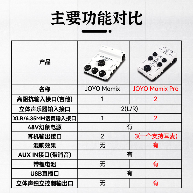 JOYO卓乐MOMIX PRO便携式混音器直播专业录音声卡双声道即插即用