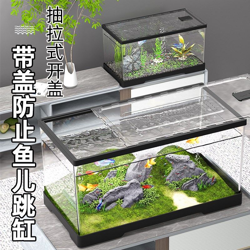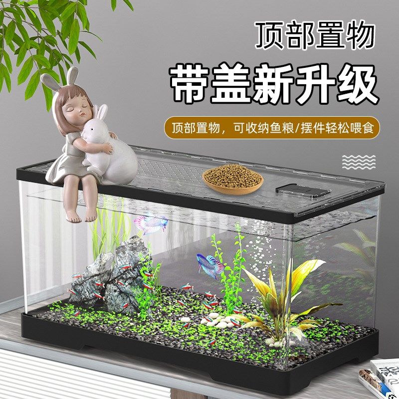 鱼缸客厅小型家用透明亚克力带盖金鱼缸办公室迷你造景创意桌面缸