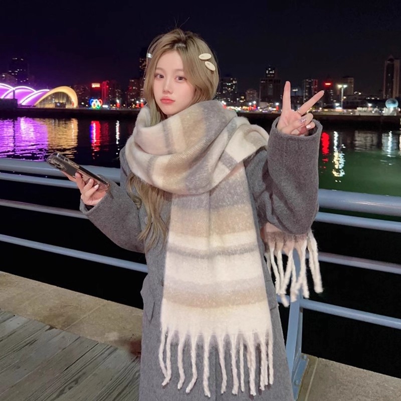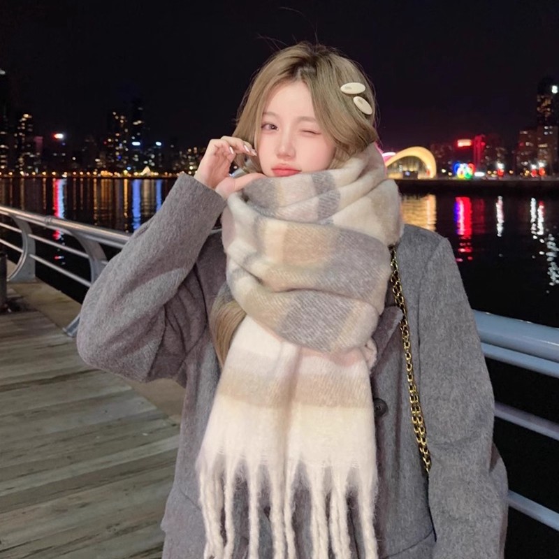 服饰腰链!韩系高级氛围感美拉德围巾冬季女款2025新款加厚保暖仿