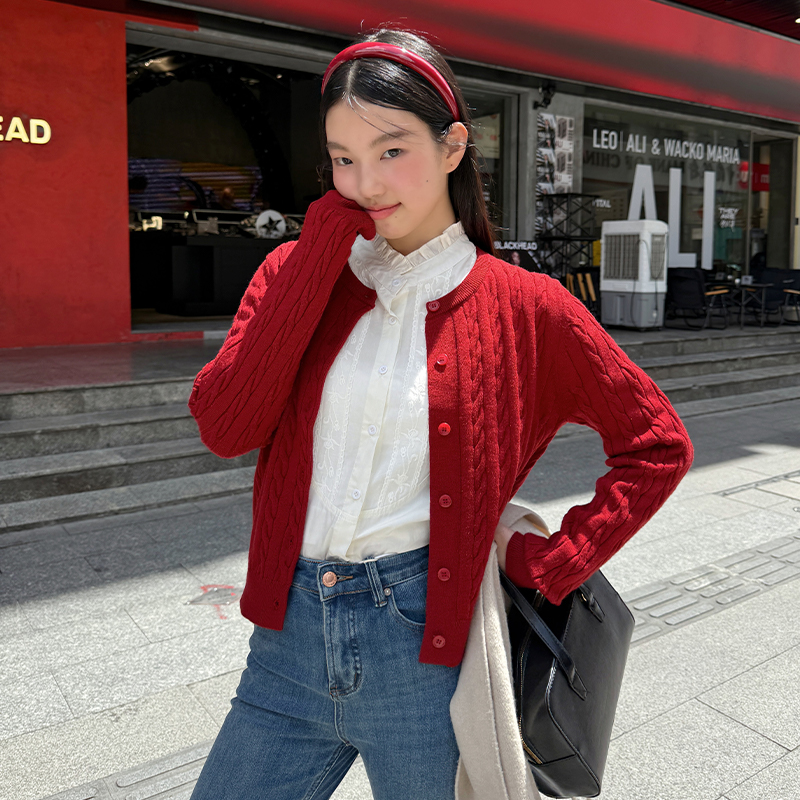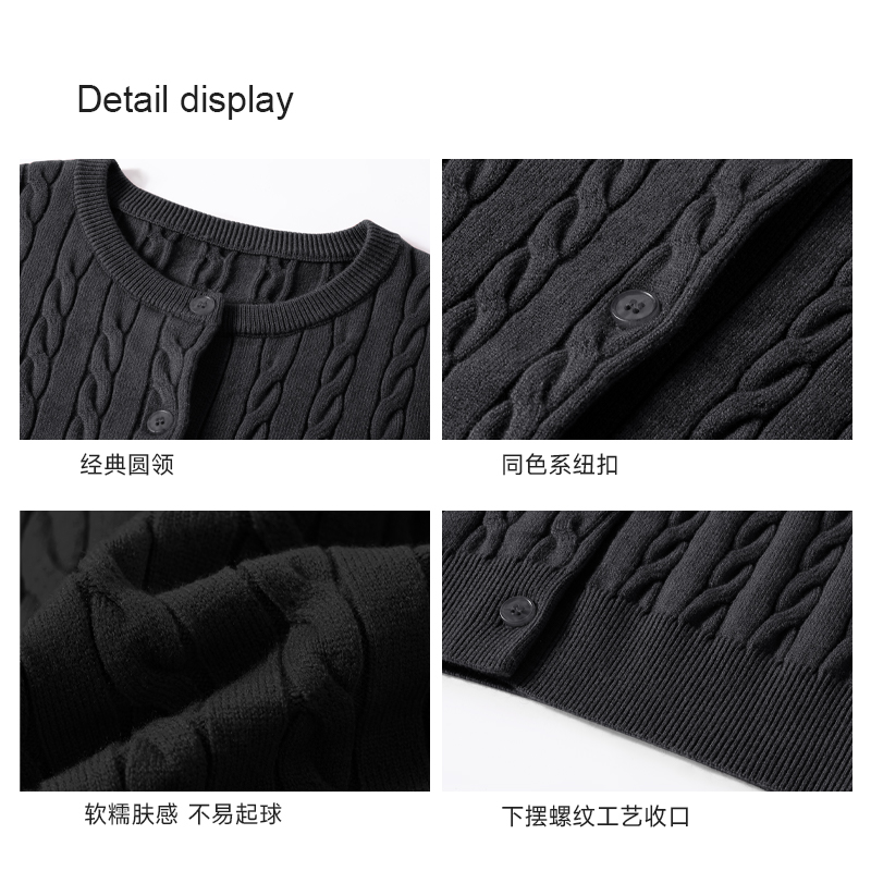 JR真维斯毛衣女春秋2025新款设计感开衫针织衫女款绞花圆领外套
