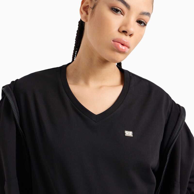 EMPORIO ARMANI/阿玛尼EA7/春夏女士宽松V领短袖正肩休闲运动T恤