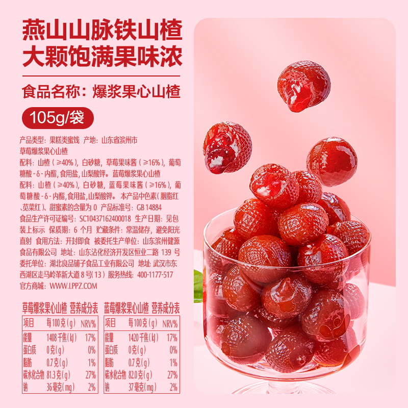 良品铺子爆浆果心山楂球105g儿童零食草莓蓝莓水果山楂零食蜜饯
