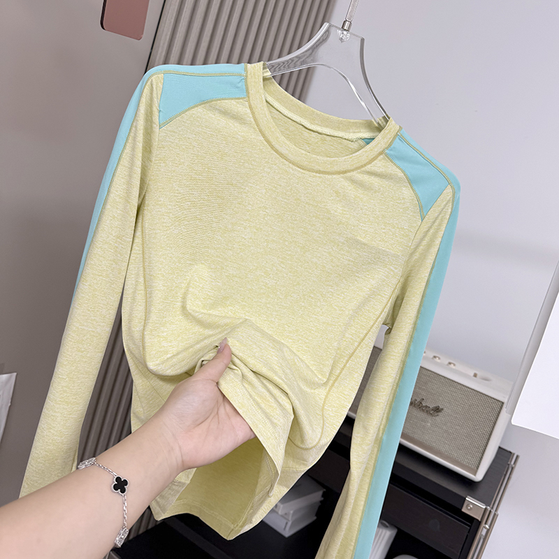 大厂订单!修身户外吸湿透气速干衣打底衫拼色训练运动长袖T恤女
