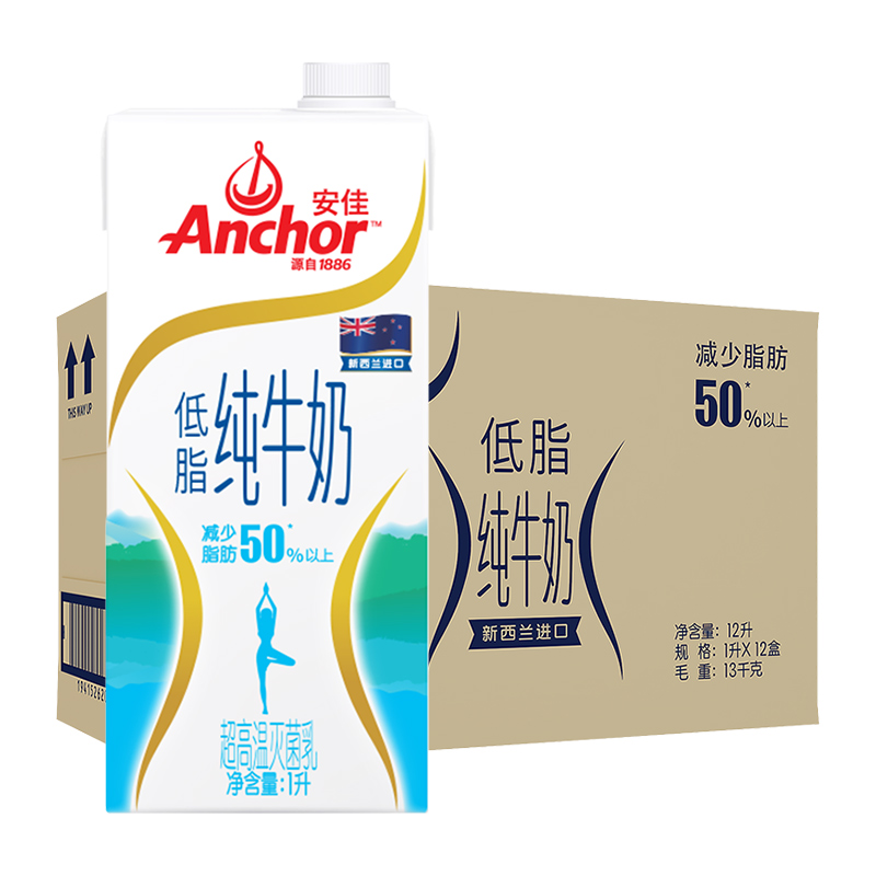 【进口】安佳高钙低脂纯牛奶3.6g蛋白质新西兰进口草饲全家营养奶