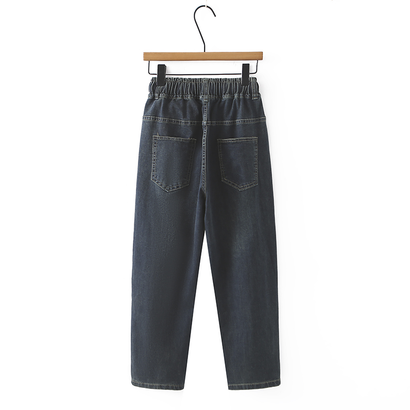 大码松紧腰牛仔裤中老年胖妈妈春季新款宽松显瘦百搭弹力哈伦裤子