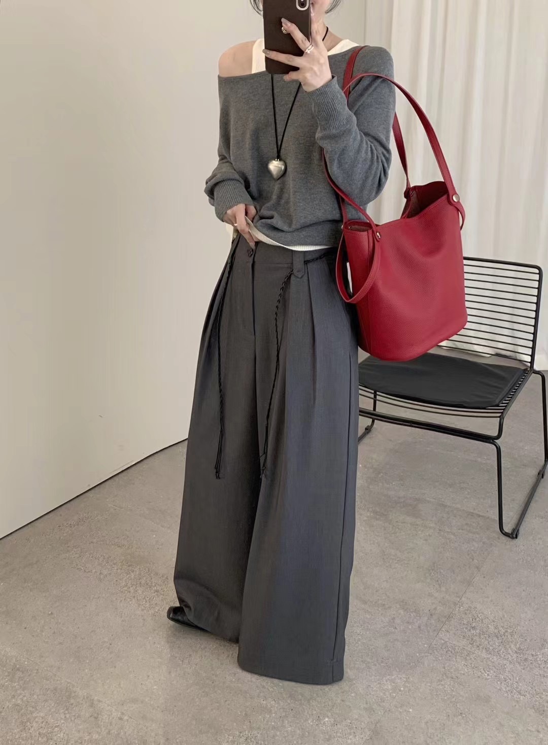 dct直筒西装长裤女新款小众设计高腰显瘦百搭宽松阔腿休闲裤8818
