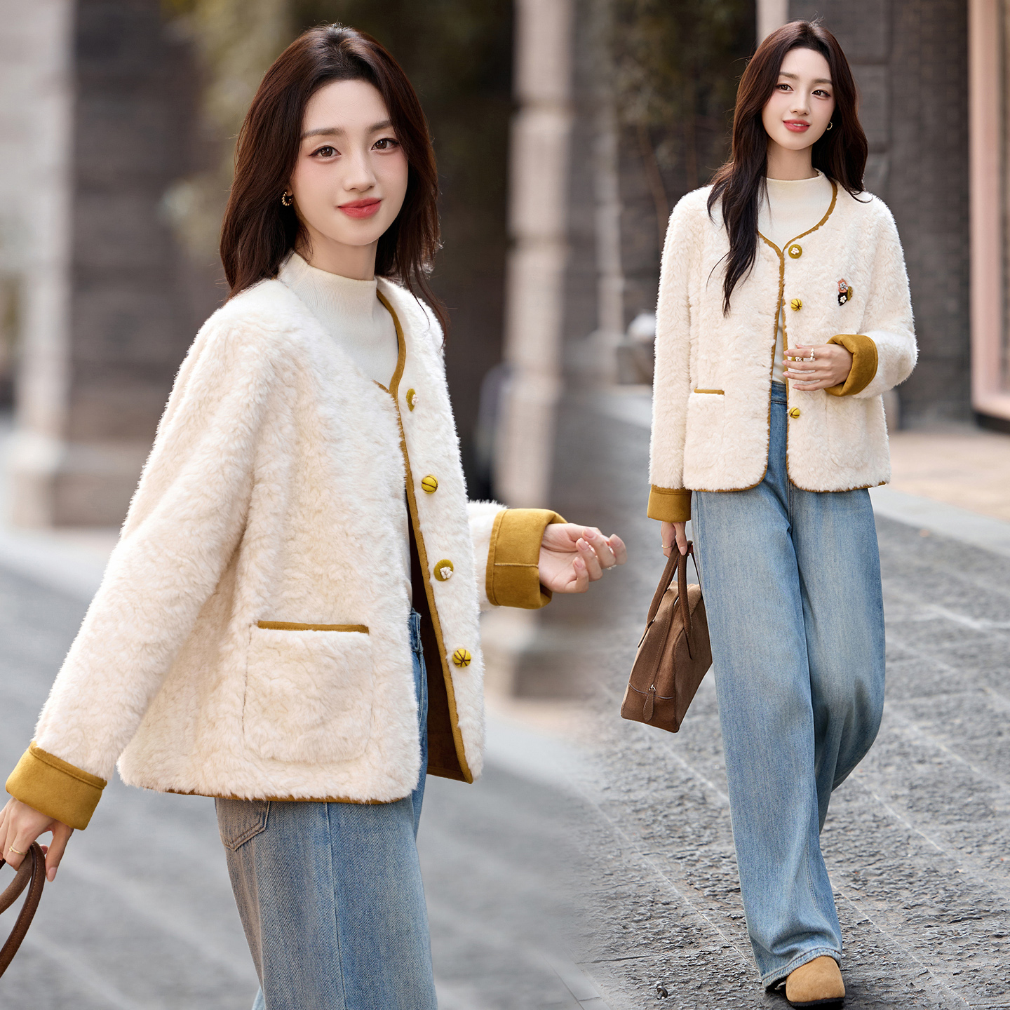 小香风羊羔毛外套女短款2025秋冬新款洋气减龄小个子皮毛一体上衣