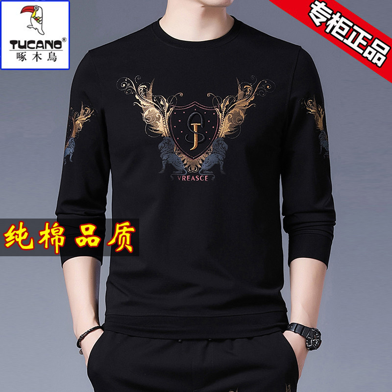 啄木鸟长袖t恤男士圆领纯棉卫衣男春秋装上衣新款潮流体恤打底衫T