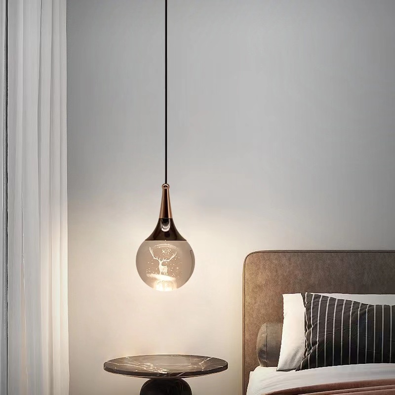 卧室床头吊灯创意灯具客厅水晶吊线灯现代轻奢吧台挂灯简约客厅灯