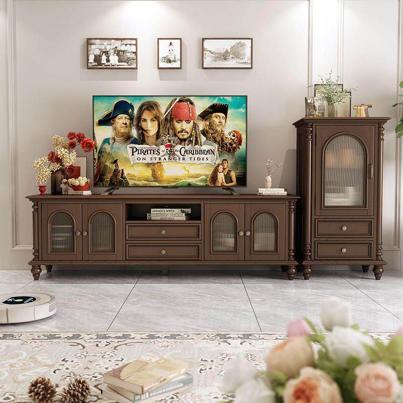 美式乡村全实木电视机柜2.2米复古客厅成套家具法式茶几家用组合