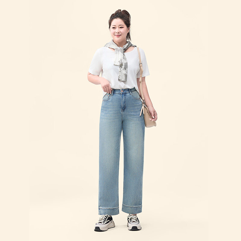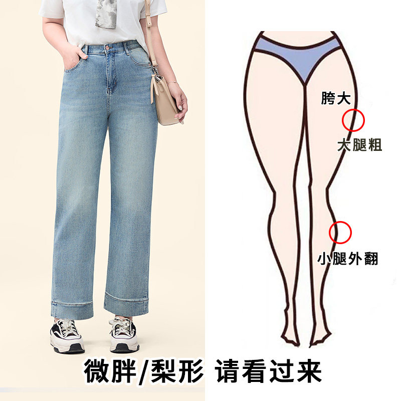 迅町夏季薄款复古胖mm大码牛仔裤梨形身材修身遮肉九分裤直筒裤女