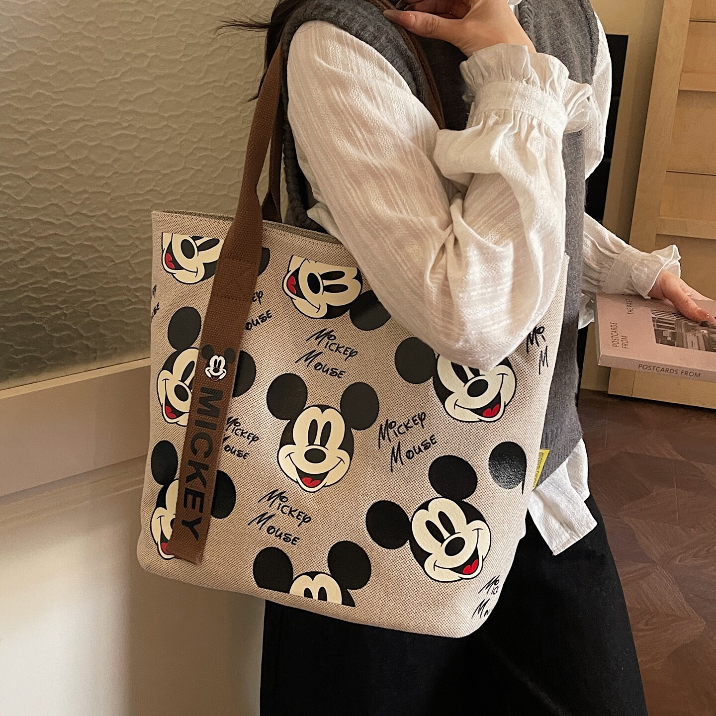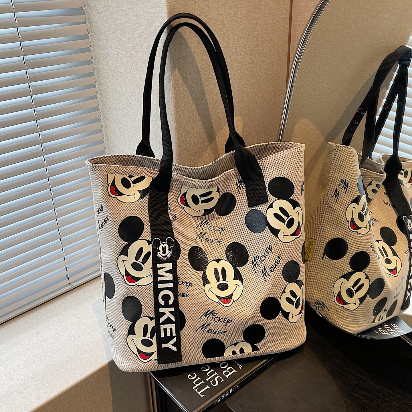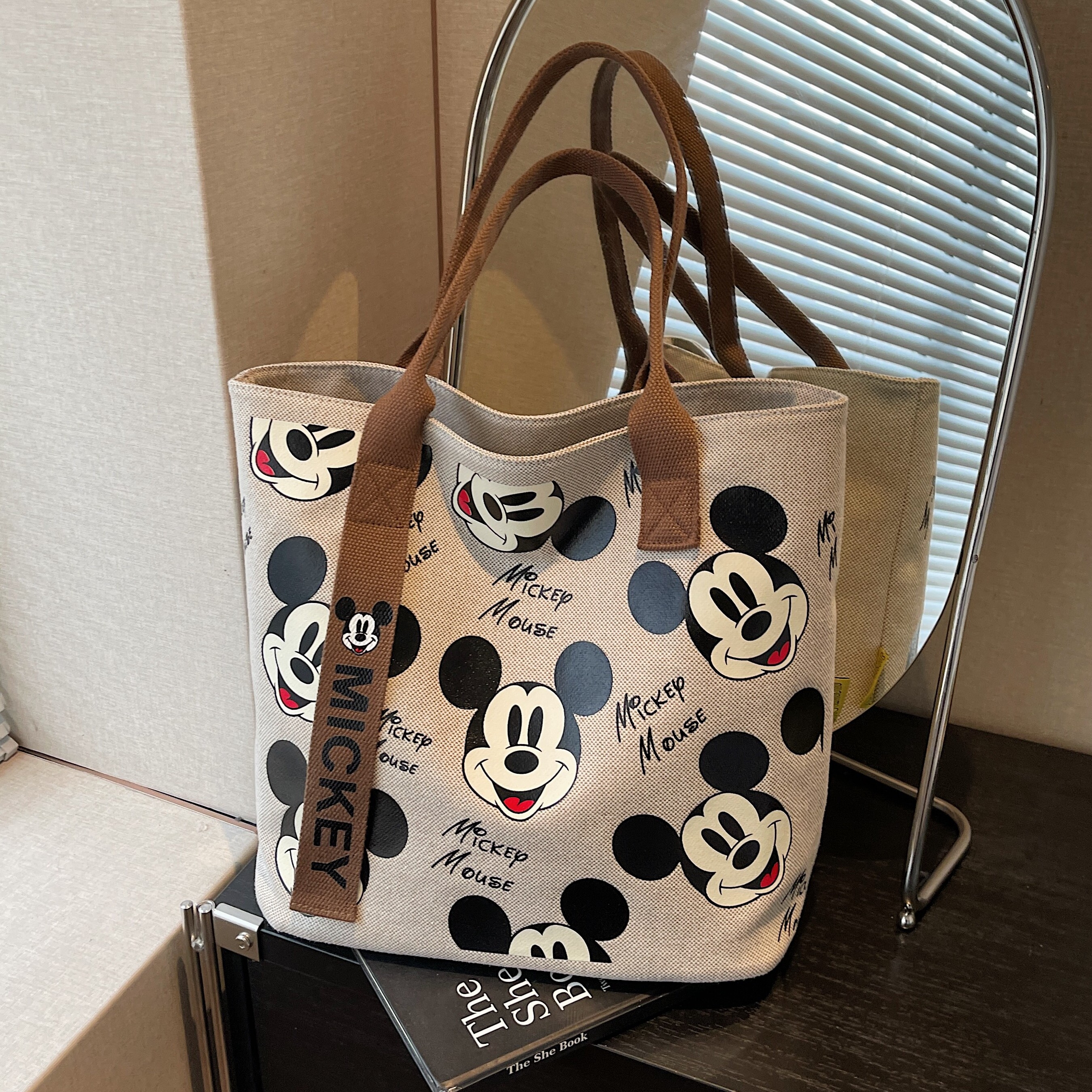 日系卡通米奇帆布包女2026新款休闲单肩包大容量妈咪包外出手提袋
