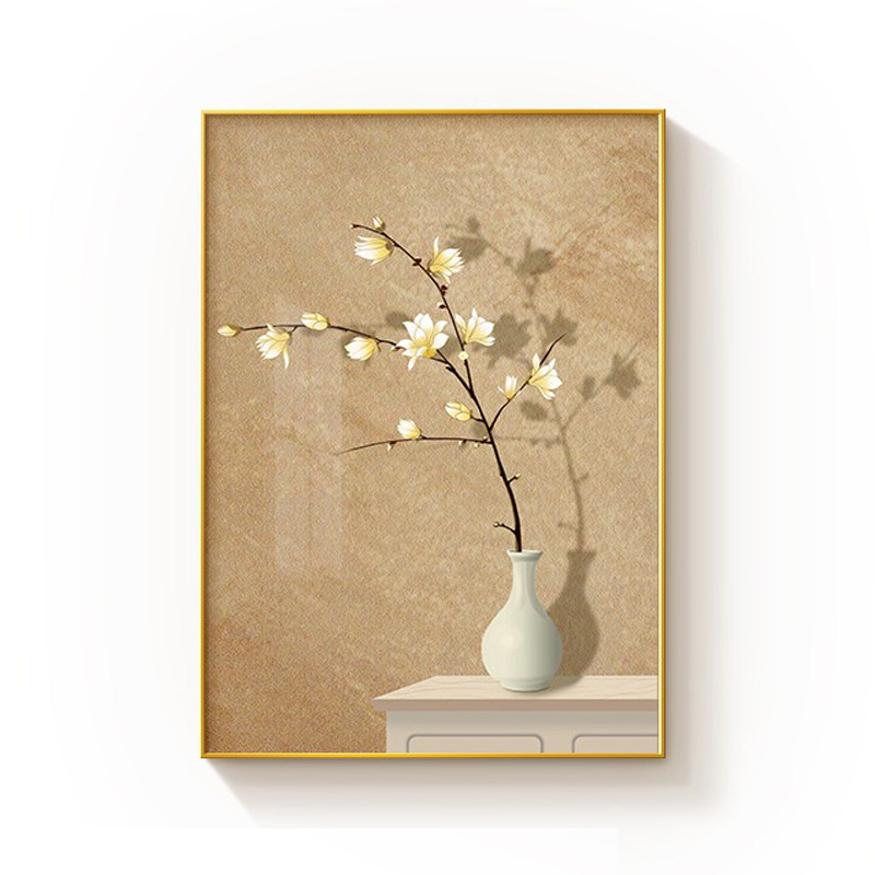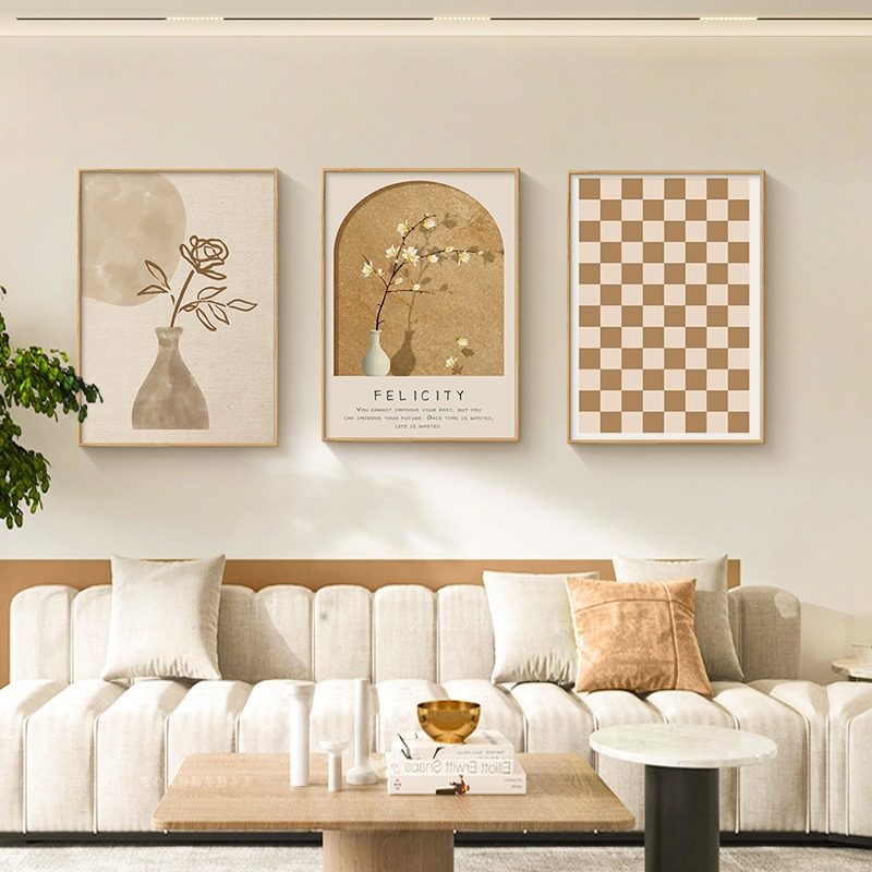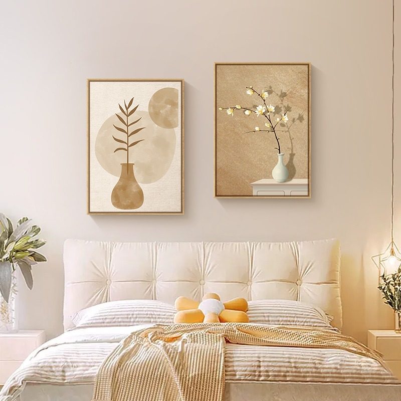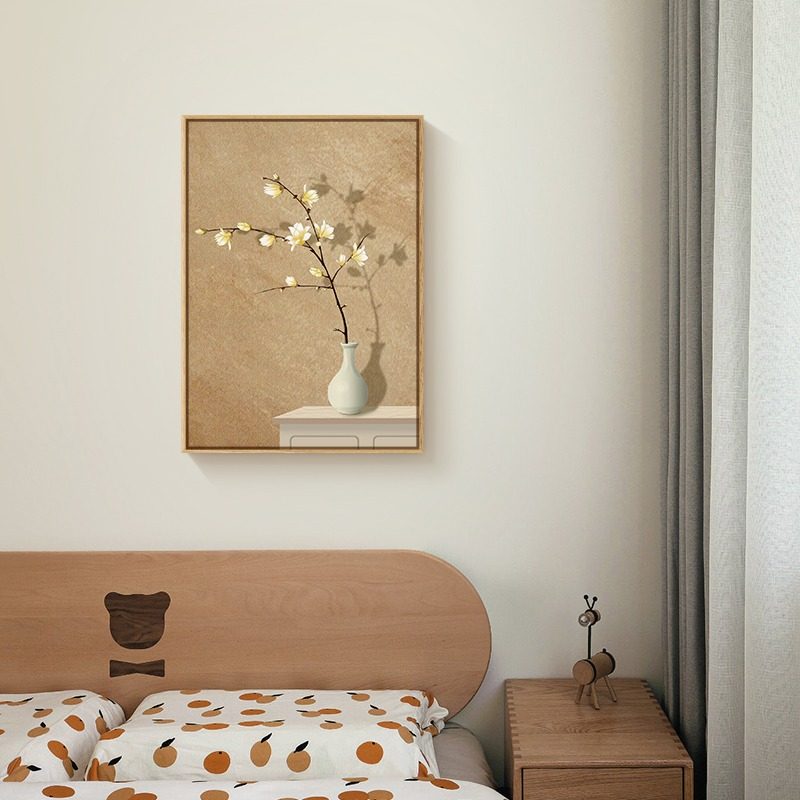 原木风客厅装饰画复古抽象沙发背景墙壁画奶油风花卉卧室床头挂画