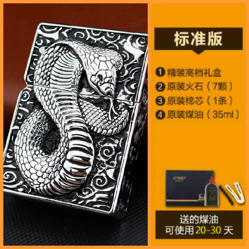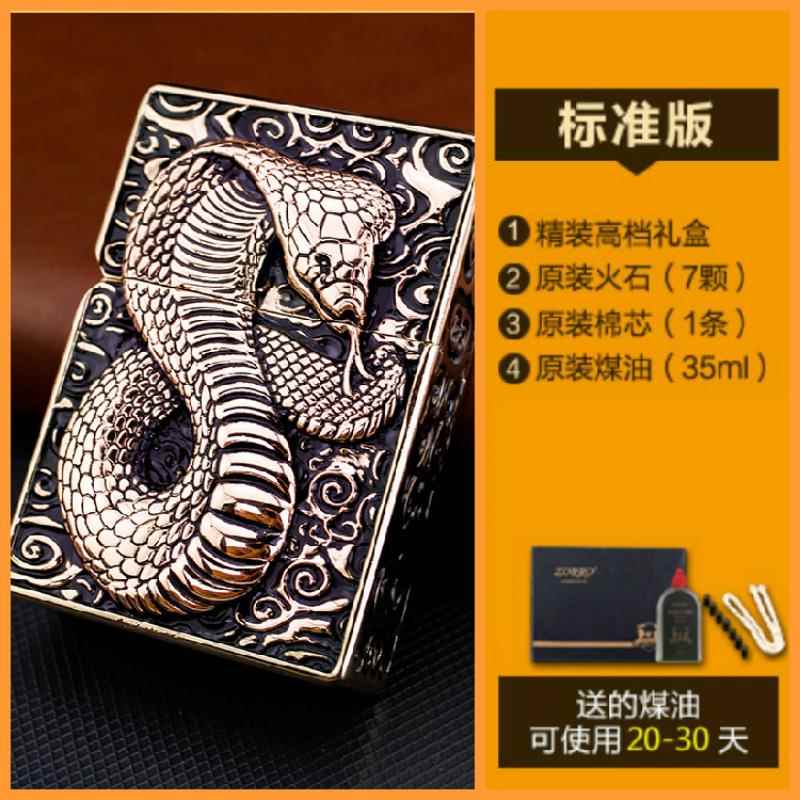 高档雕香港正zorro防佐罗煤油打火机品纯铜重甲眼镜蛇霸气刻创意