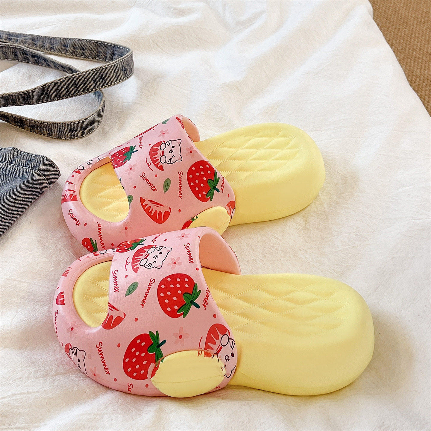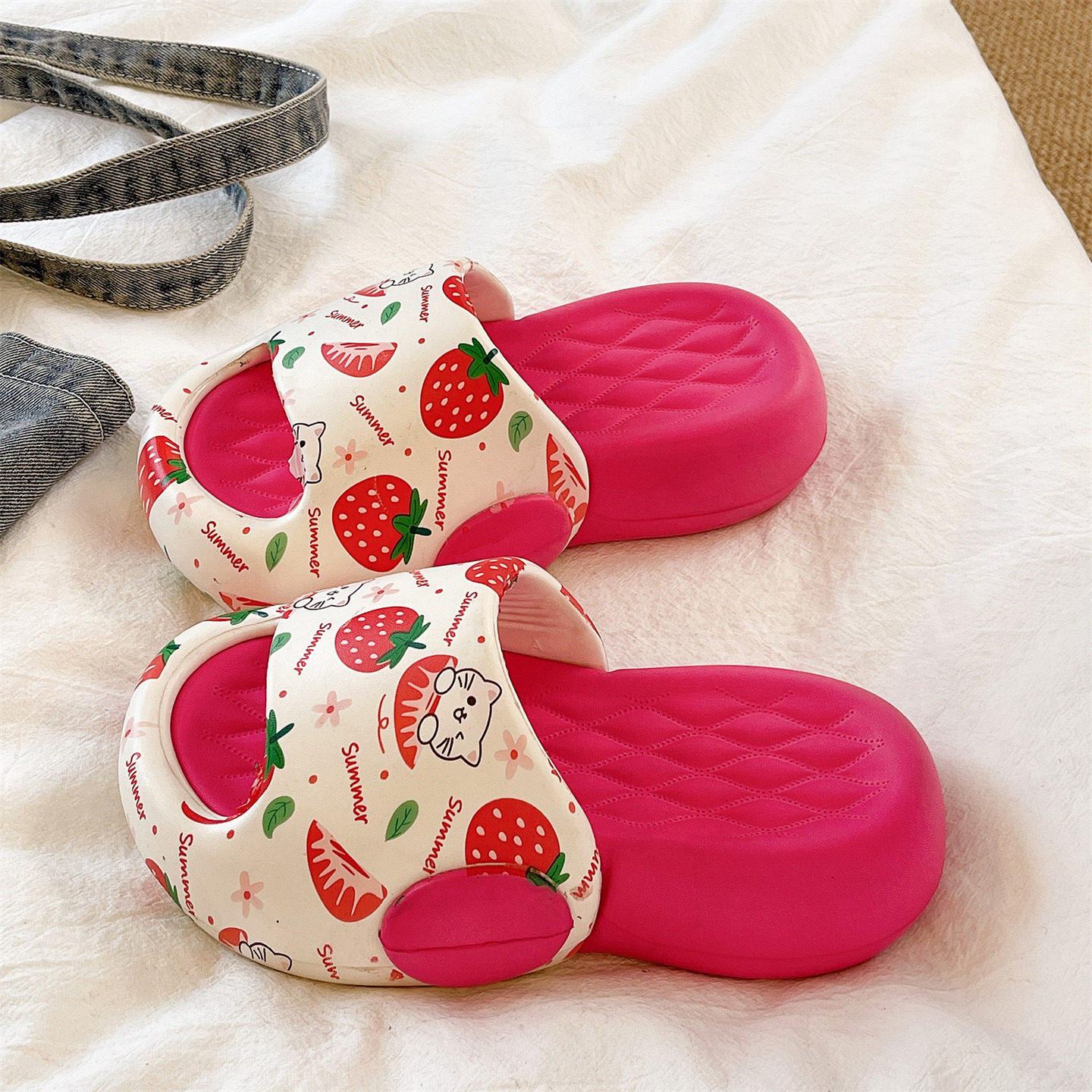 印花拖鞋女2026新款夏季外穿厚底防滑室内居家可爱草莓猫咪凉拖鞋