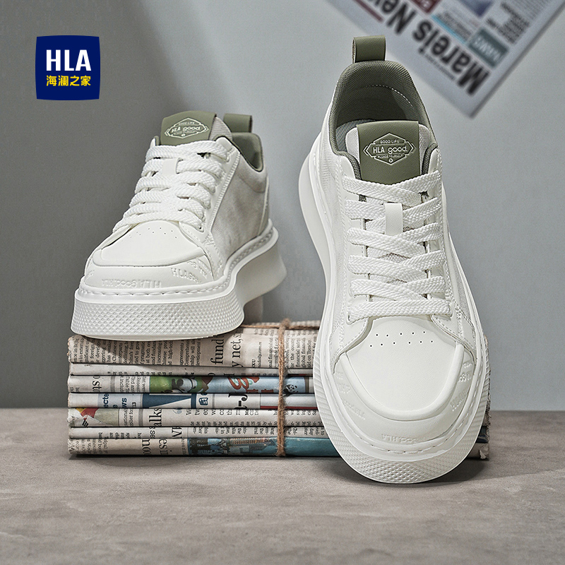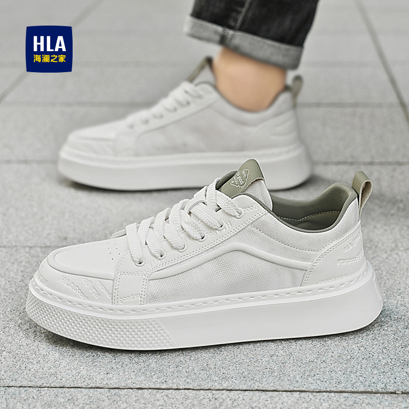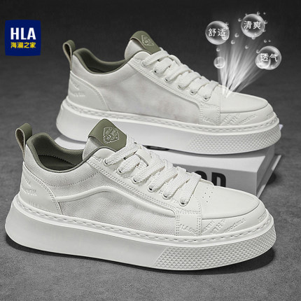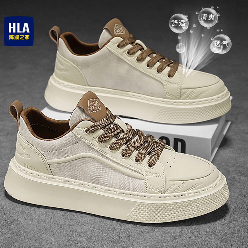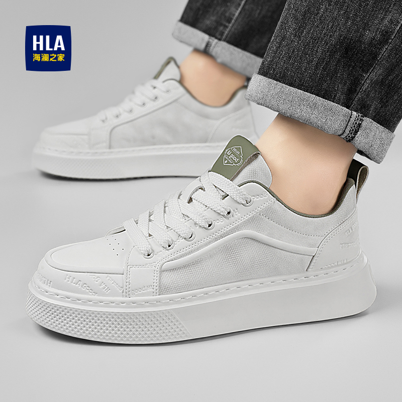 海澜之家男鞋2025新款夏季透气薄款帆布板鞋男厚底增高休闲小白鞋