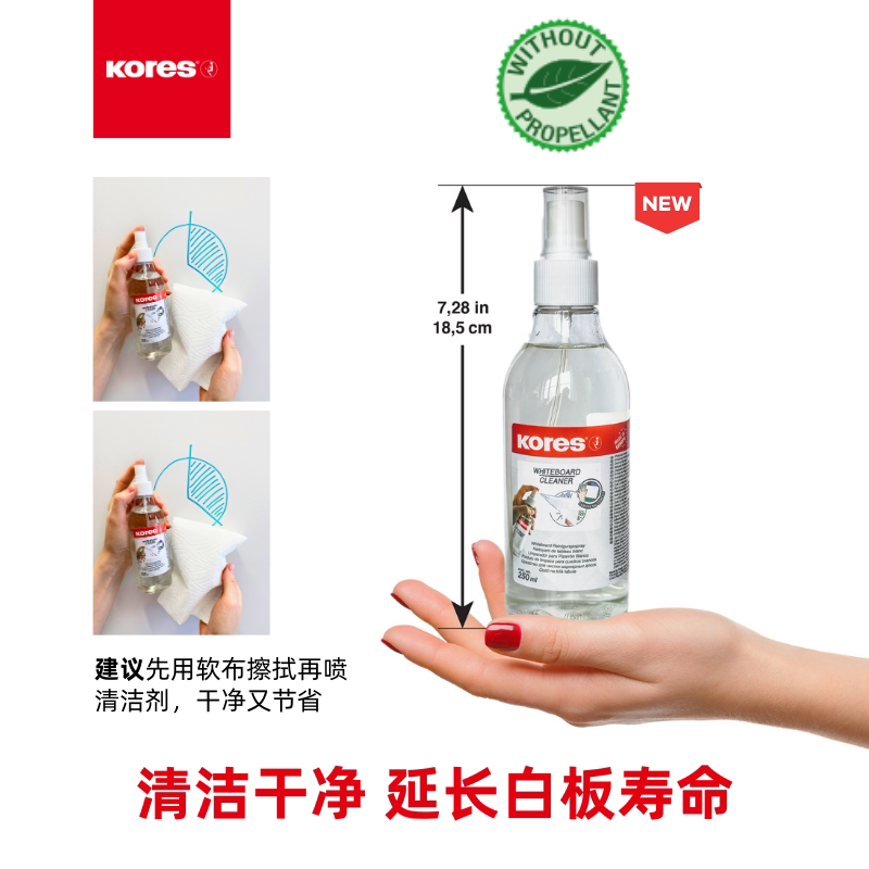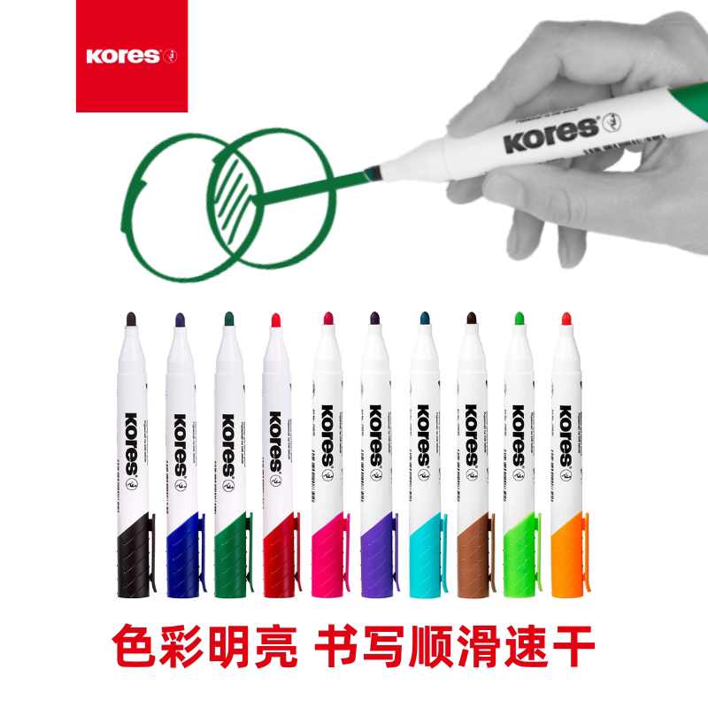 欧洲进口KORES高乐士彩色白板笔无毒可擦儿童教师商务办公专用涂鸦画板笔易擦写配白板擦白板清洁液