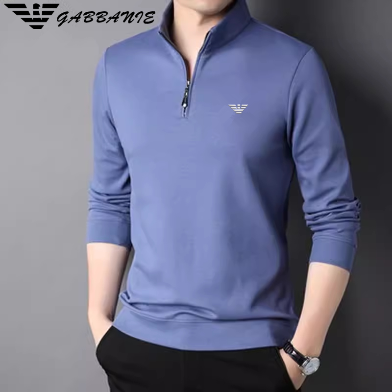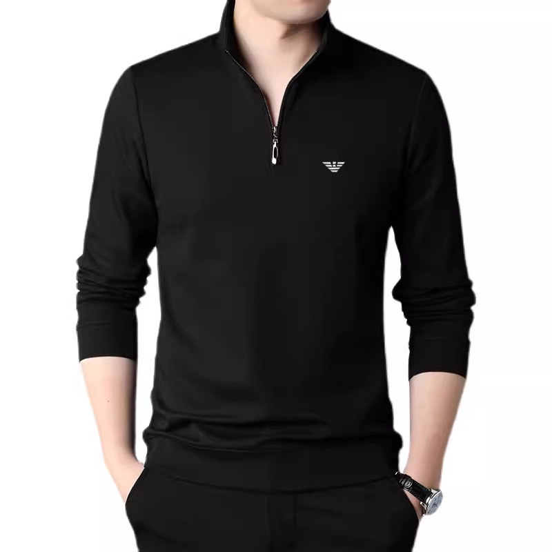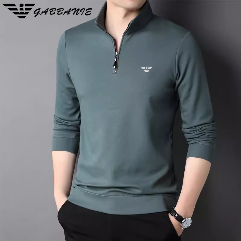 正品意大利 男士中年长袖t恤春秋新款立领打底polo衫宽松纯棉卫衣