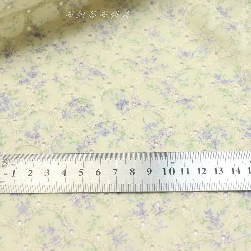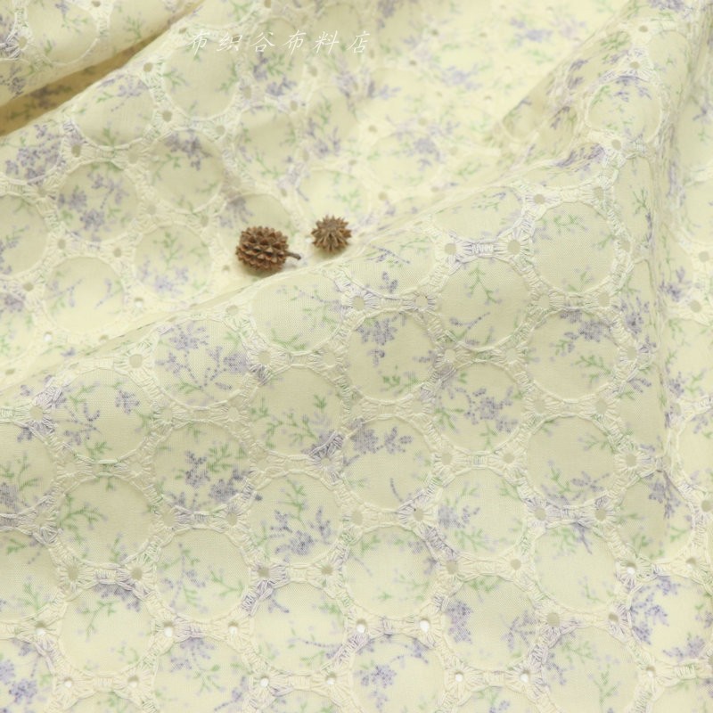 日单文艺满幅刺绣紫色小碎花涤棉布料夏季连衣裙上衣服装手工面料