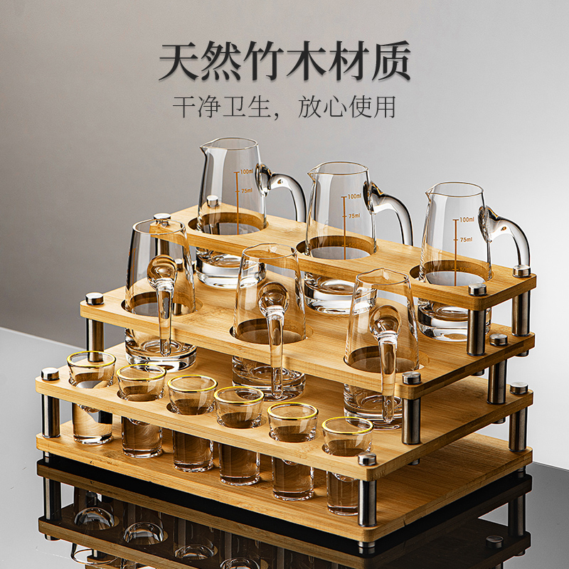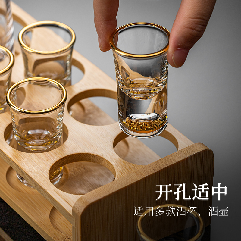 家用白酒杯架摆件螺丝竹木制托盘架子专用酒具摆放收纳打孔展示架