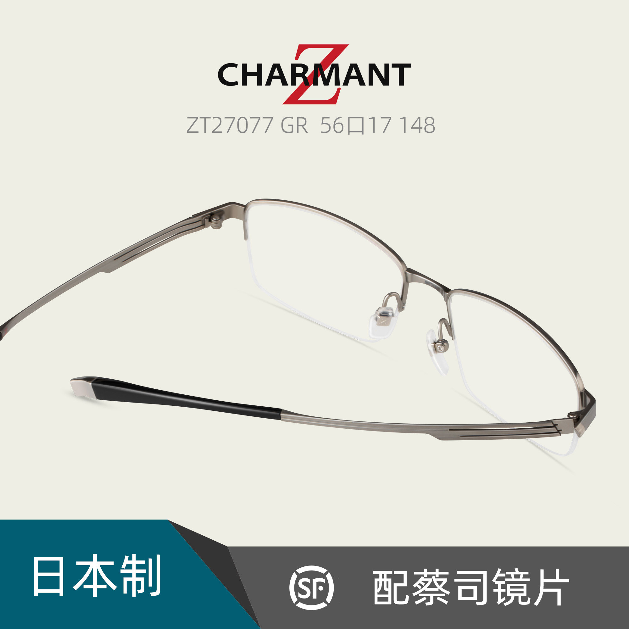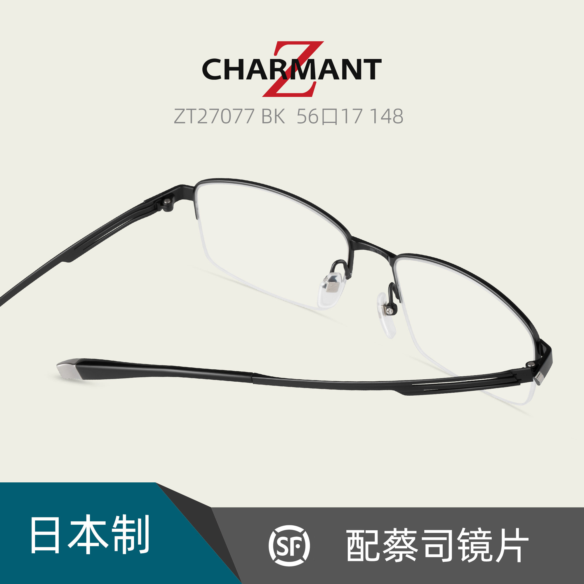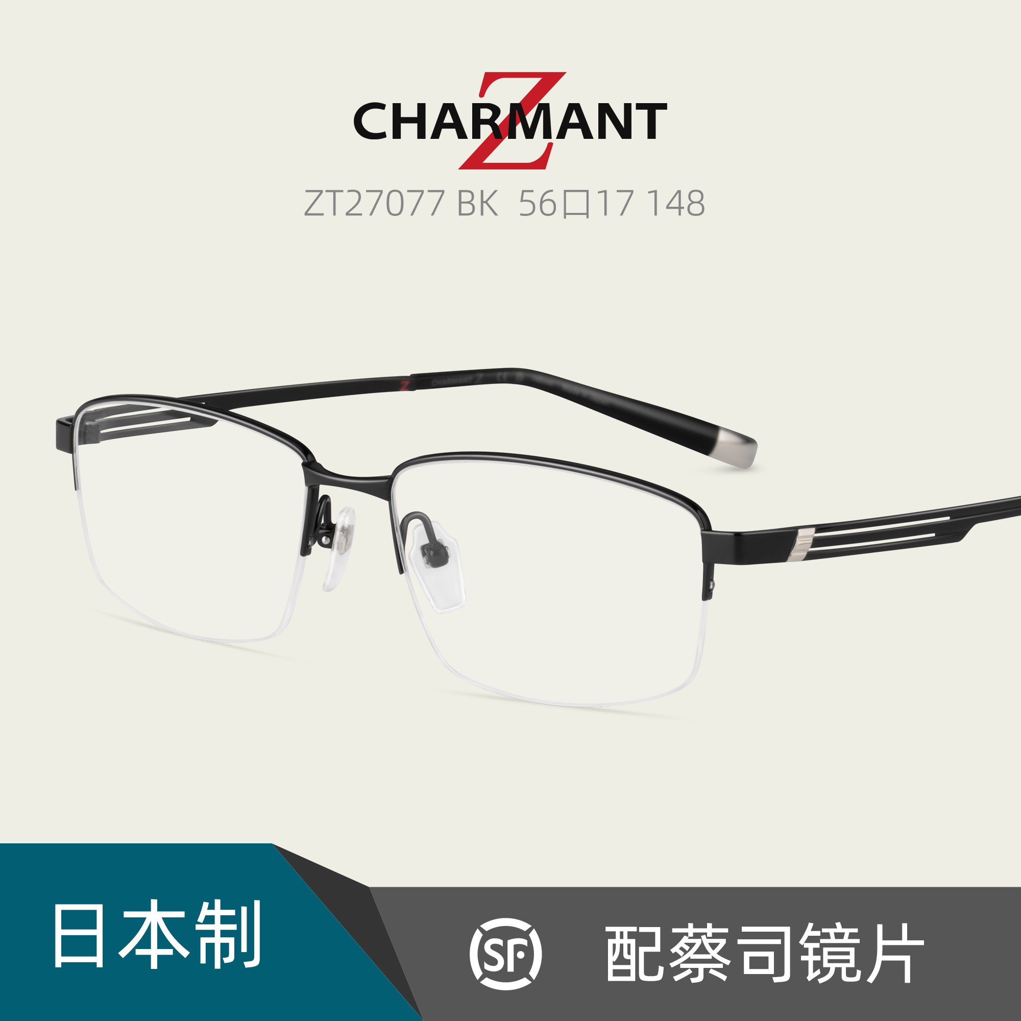 CHARMANT日本夏蒙Z钛金属男商务休闲半框近视眼镜架配镜片ZT27077