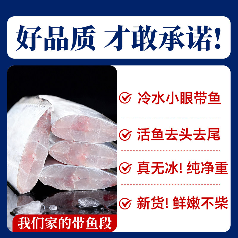 青岛带鱼去头尾中段新鲜冷冻东海小眼刀鱼特级大号