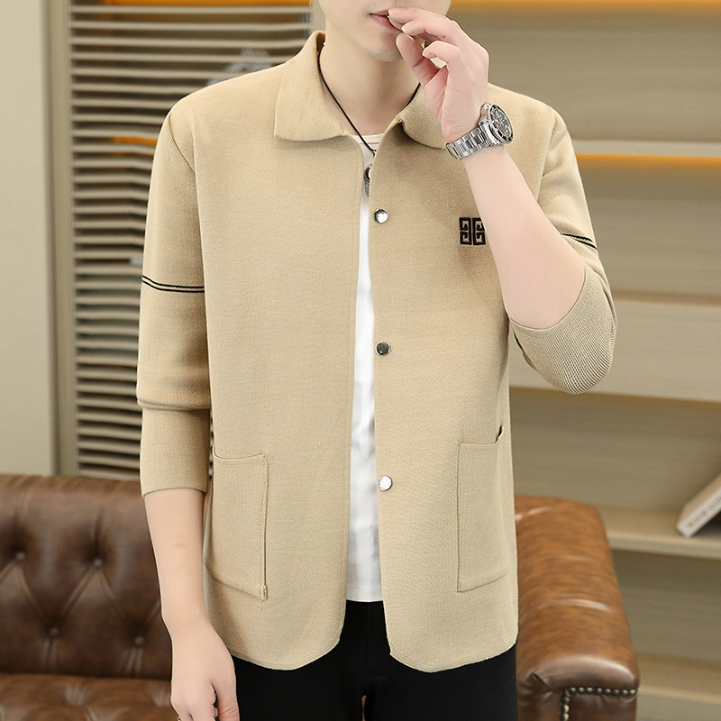 春秋季男士翻领开衫外套高品质韩版潮流毛衣通勤刺绣针织夹克风衣