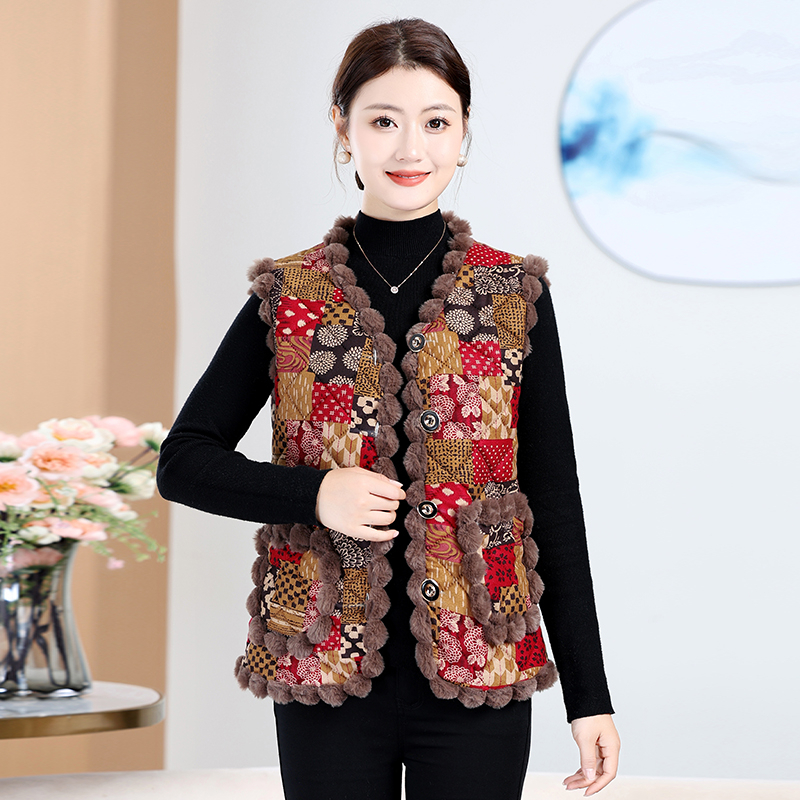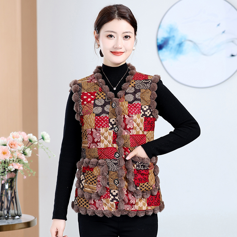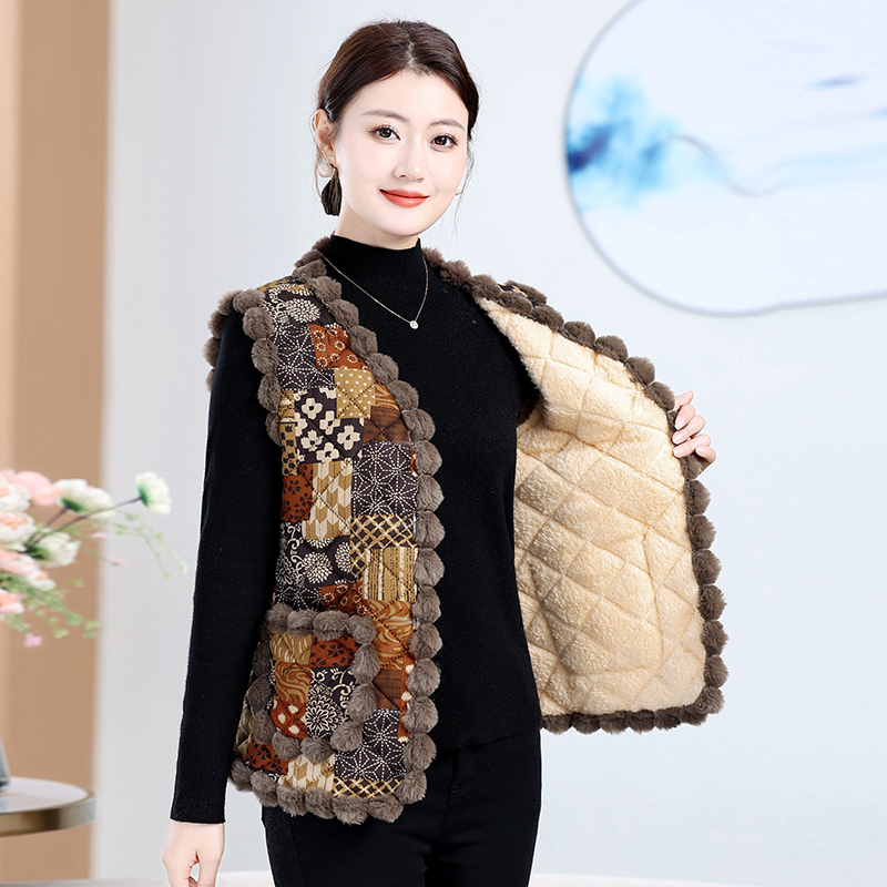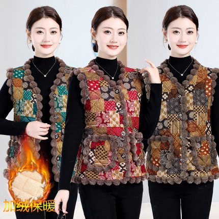 妈妈装加绒加厚马甲中老年女装秋冬新款中式马夹外套保暖背心上衣