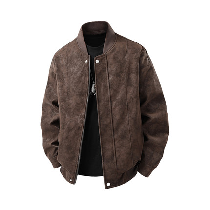 秋冬季新款加绒保暖美式飞行夹克潮流棒球服皮衣外套男