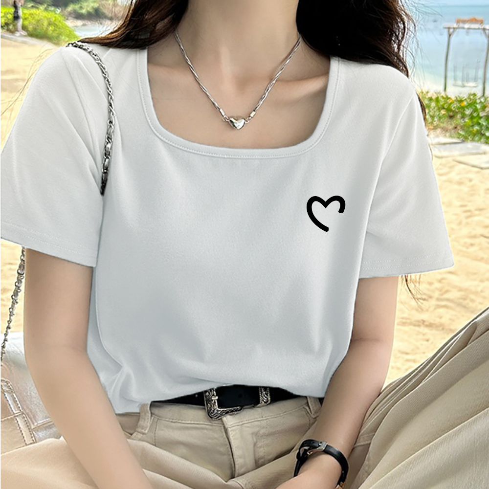 方领小心机露锁骨短袖T恤女2025夏季简约百搭纯色基础款纯棉上衣