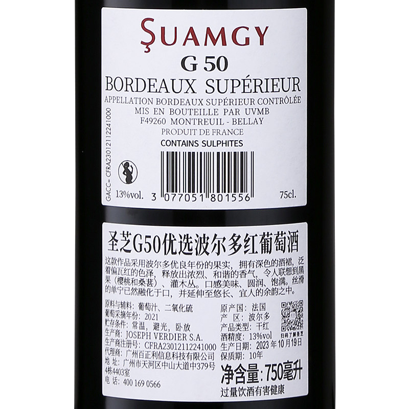 圣芝G50法国进口波尔多红酒整箱