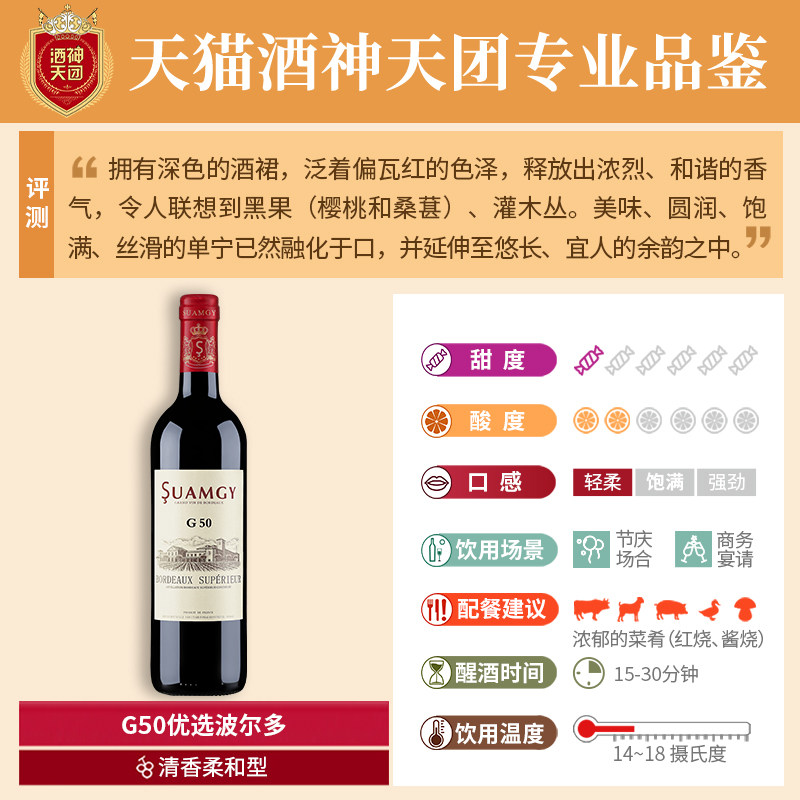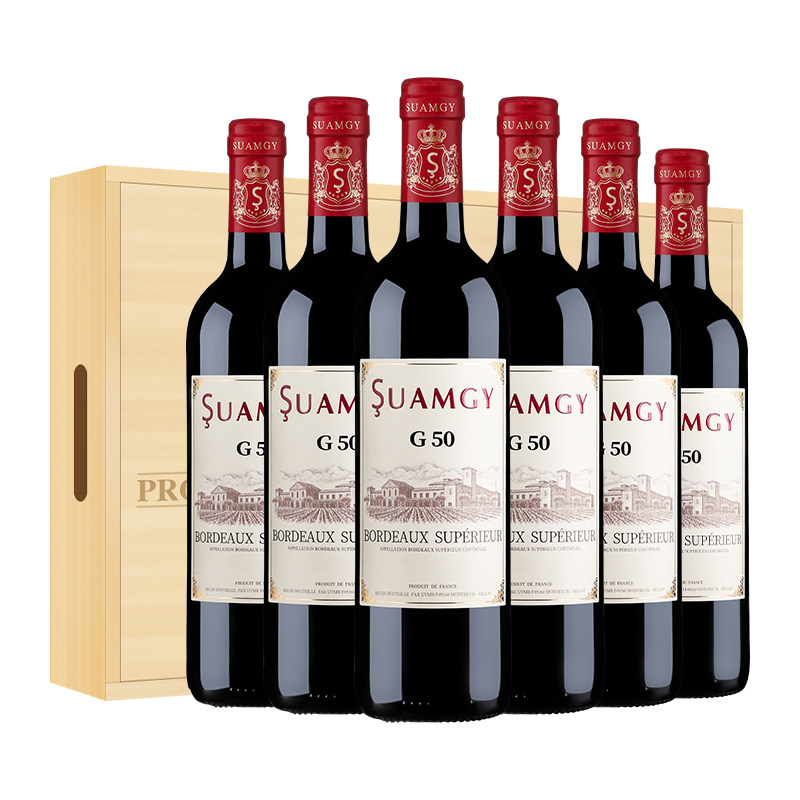 圣芝G50红酒整箱装法国原瓶进口波尔多AOC干红葡萄酒木箱送礼