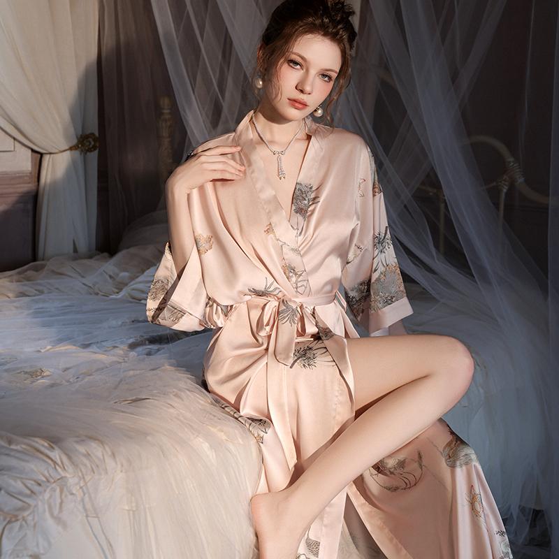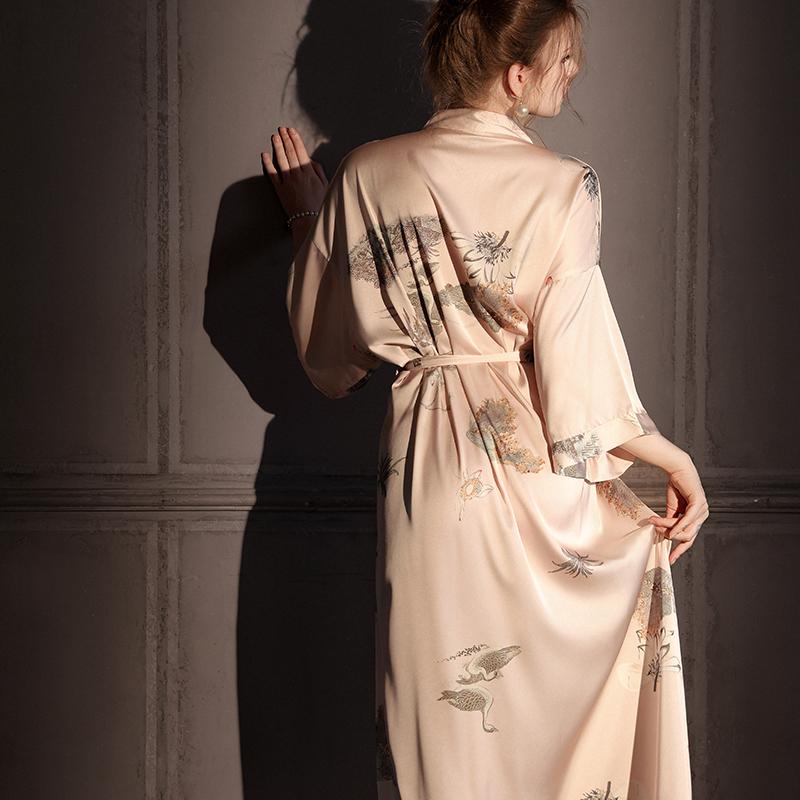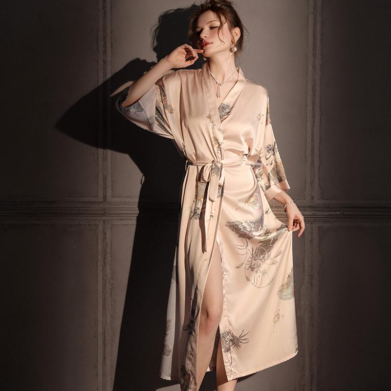 新款长款仿真丝绸睡袍