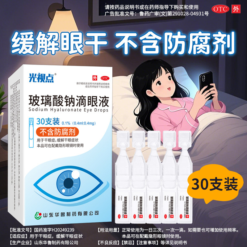 玻璃酸钠眼药水滴眼液光视点玻璃酸钠滴眼液眼药水缓解视疲劳干涩