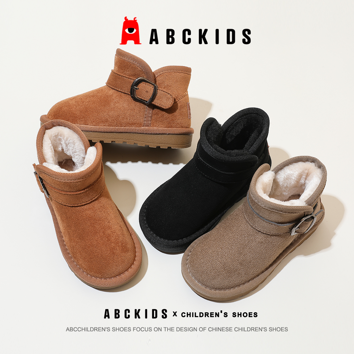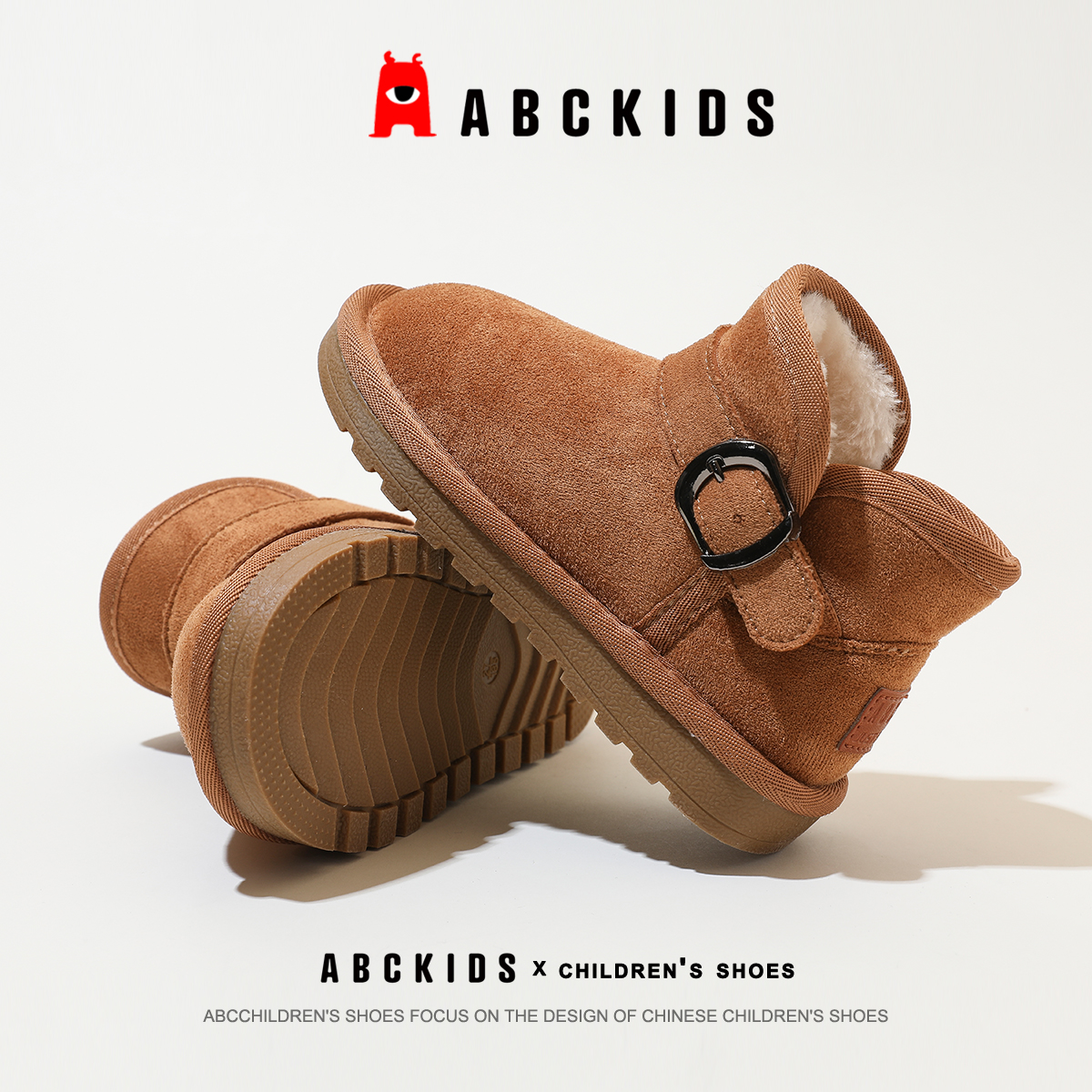 abckids女童棉靴2025冬季新款儿童加绒加厚保暖雪地靴男童软底潮