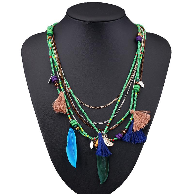 波西米亚民族风长款羽毛多层项链