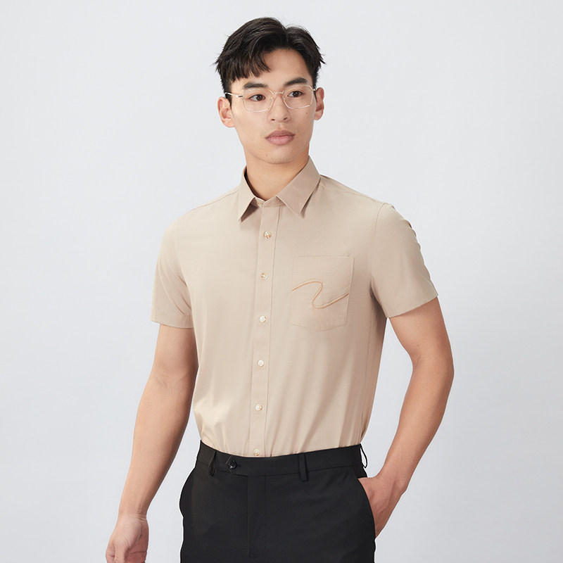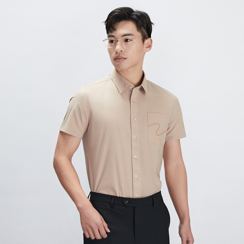 【商场同款】乔治白夏季薄款男士短袖衬衫尖领肤色韩版修身衬衣