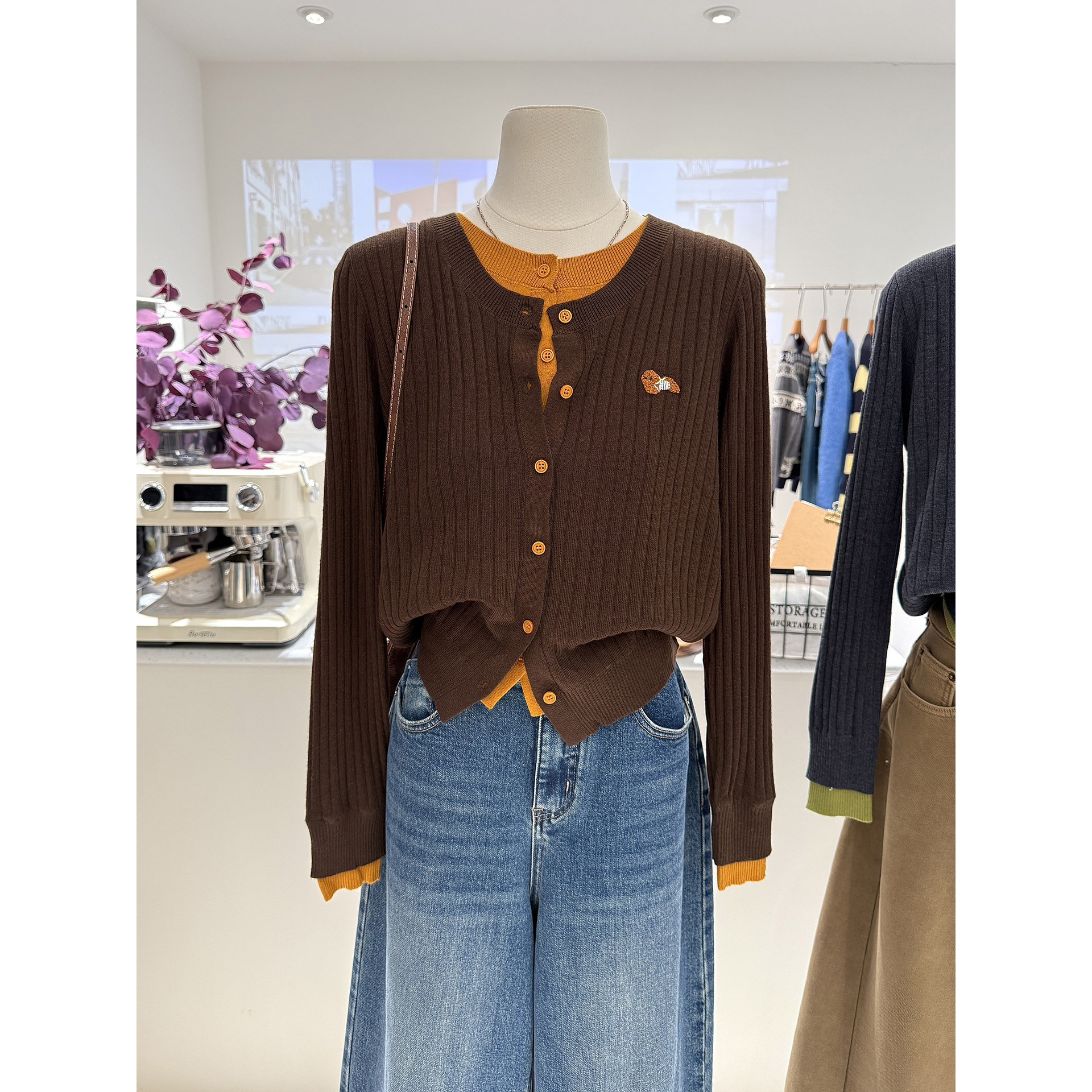 假两件针织开衫外搭毛衣外套女