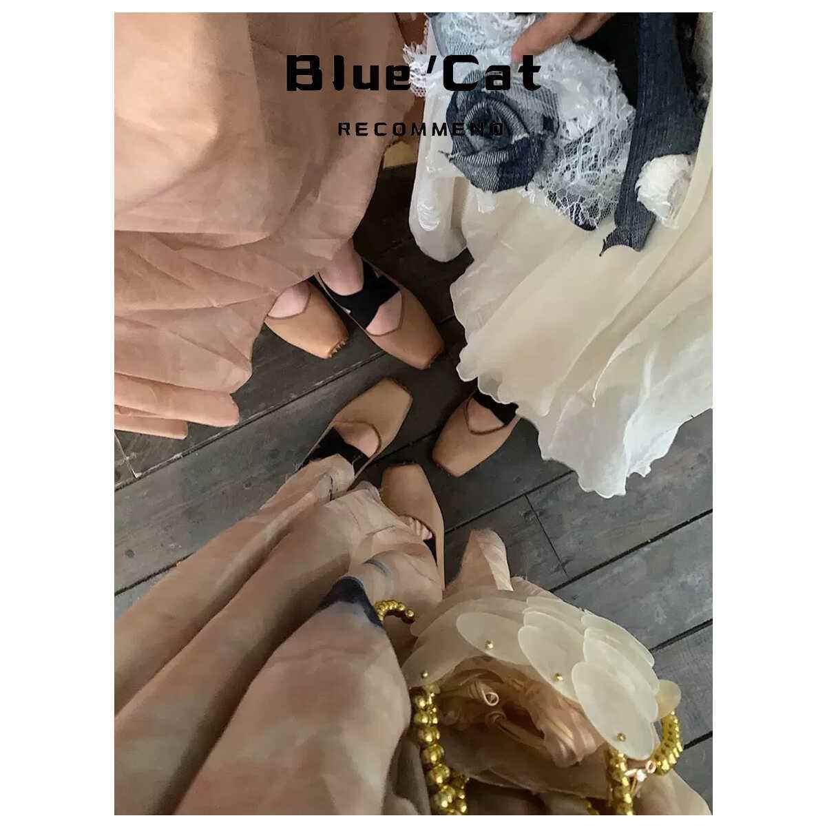 蓝猫先生芭蕾舞鞋外穿方头粗跟单鞋女UMAW交叉复古玛丽珍猪鼻子鞋