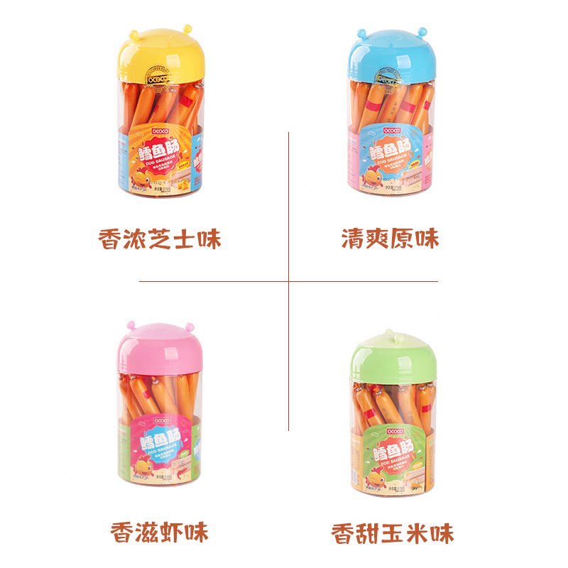 OCOCO鳕鱼肠儿童孩子休闲零食罐装即食火腿肠原味芝士味虾味营养