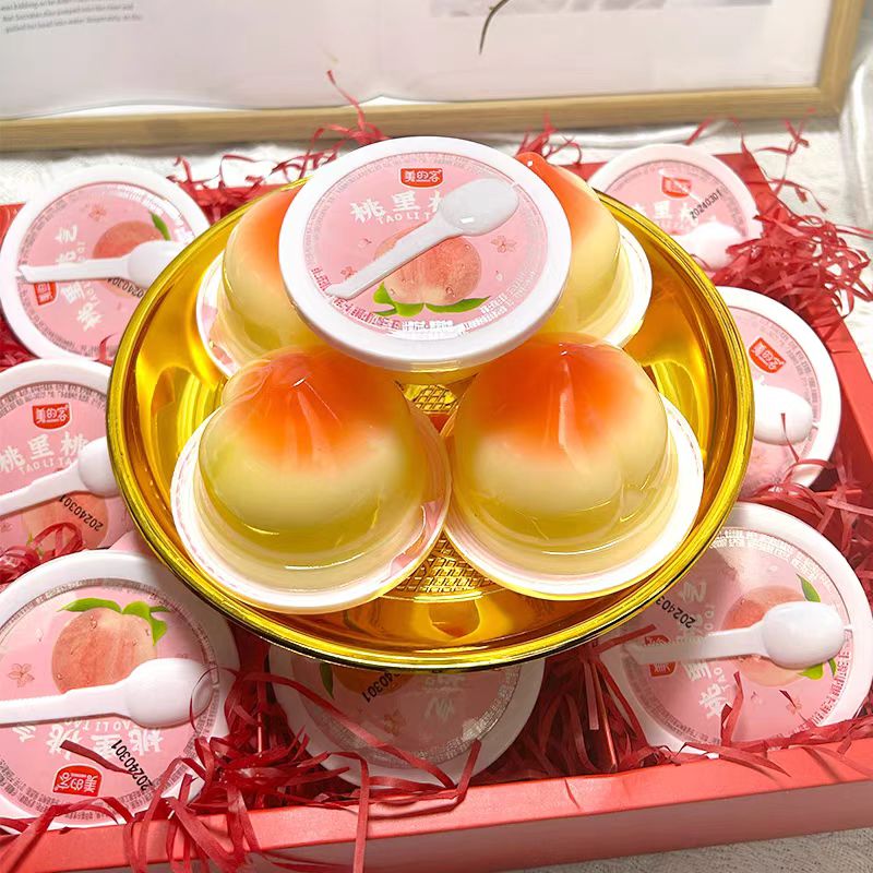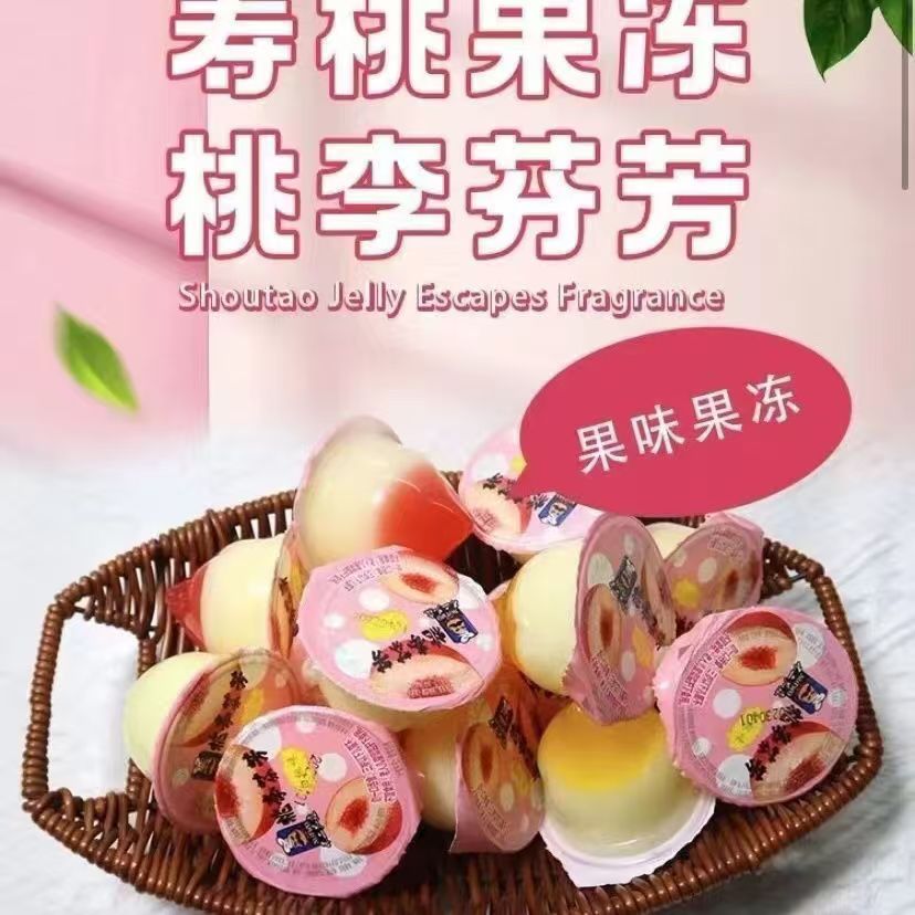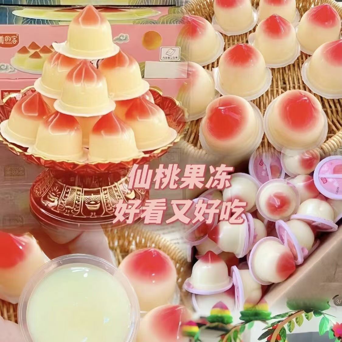 潮汕桃子果冻拜月娘寿桃仙桃果冻大杯桃心果冻零食网红心型