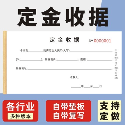 定金收据二联三联购买销售定金收条产品购房购车订金收条家具门窗定制定金收条定金收条通用版定金单据