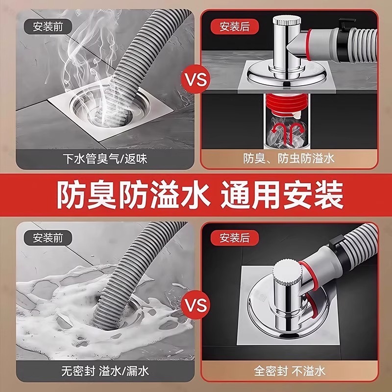 洗衣机下水管三头通地漏双排水专用接头排水管道二合一防溢水防臭