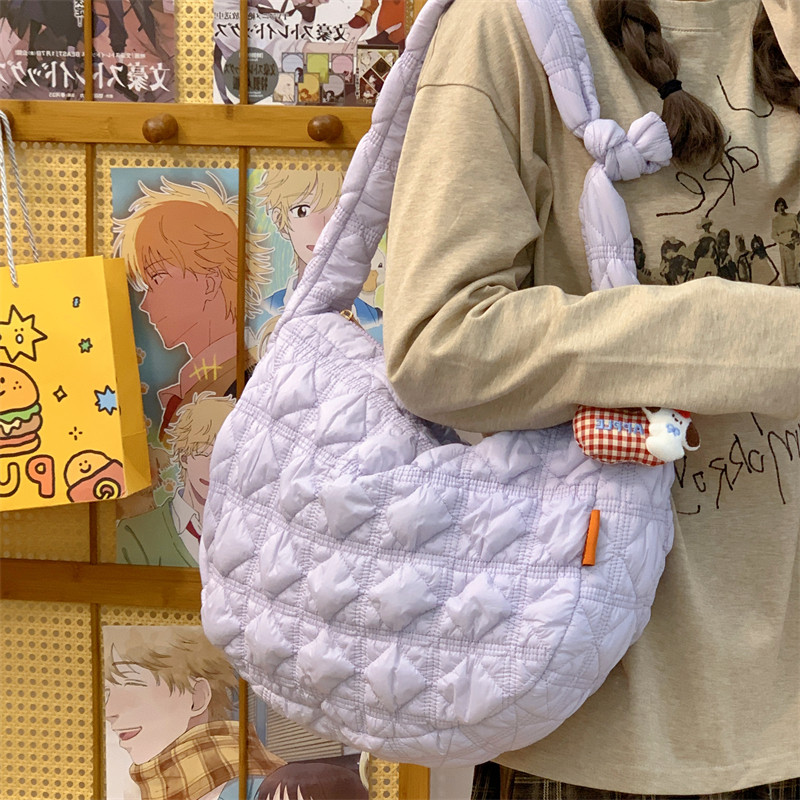 斜挎包通勤百搭女大容量韩版云朵褶皱托特包单肩手提包百搭棉服包