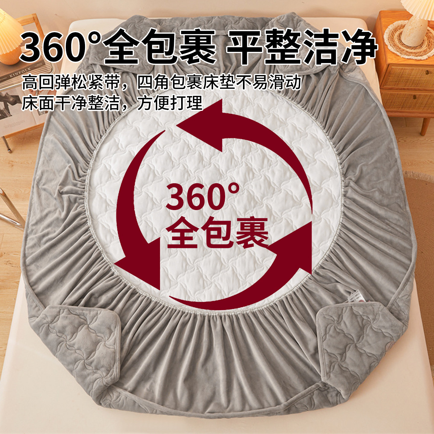 无印良品牛奶绒全包加厚保暖床笠