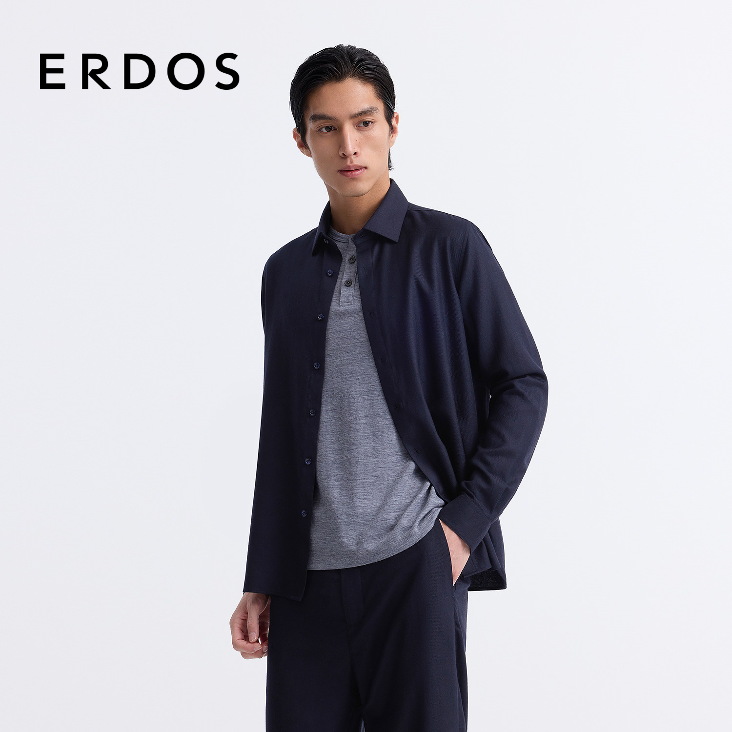 ERDOS 男装丝毛绒混纺衬衫25年春新款蓝色轻薄长袖上衣商务休闲