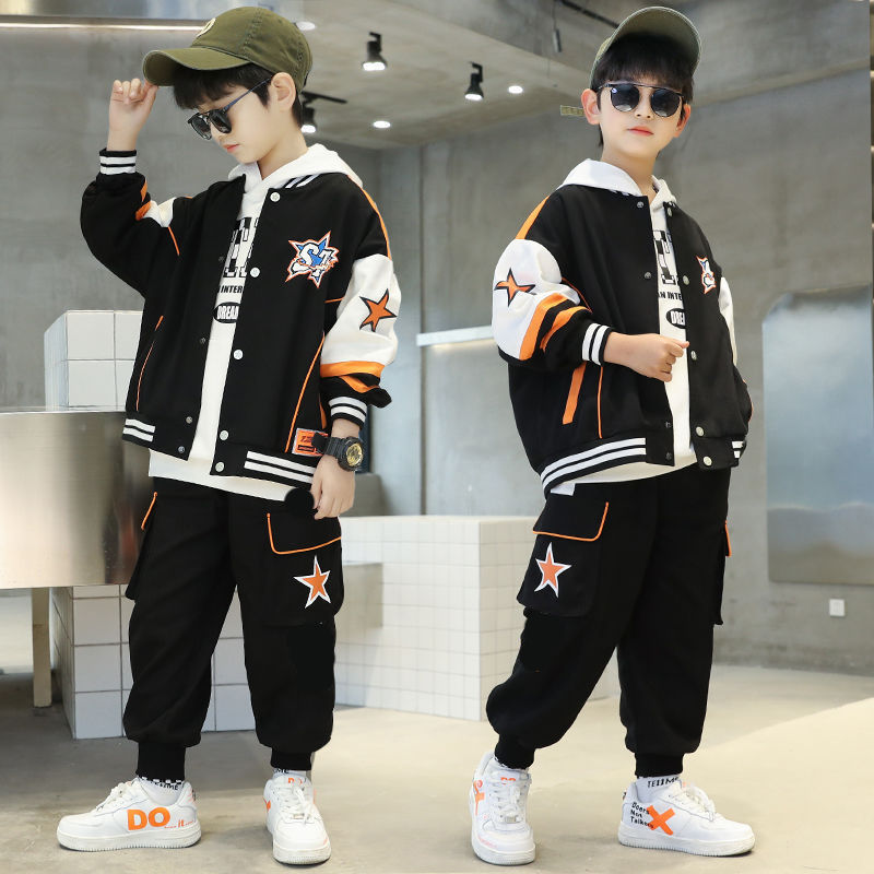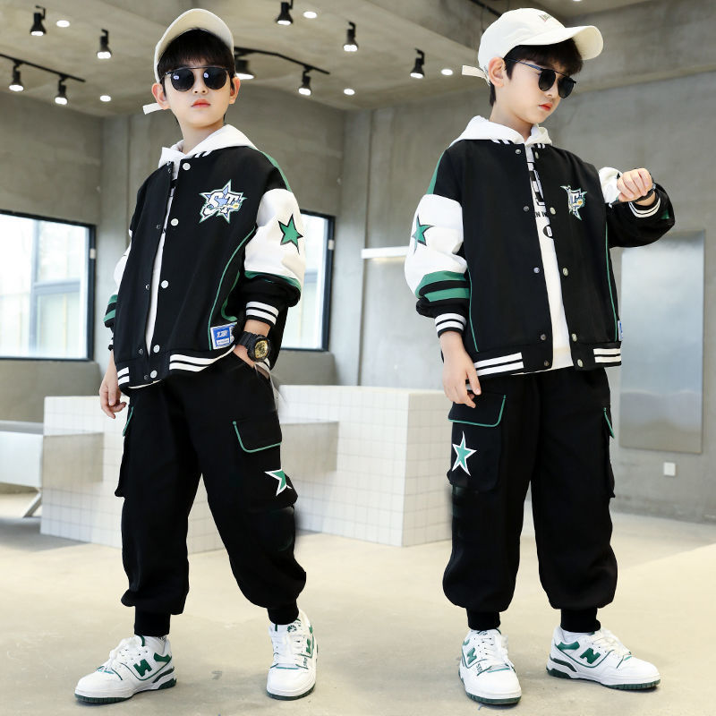 安奈儿联名儿童装男童运动套装春秋中大童男孩棒球服外套两件套
